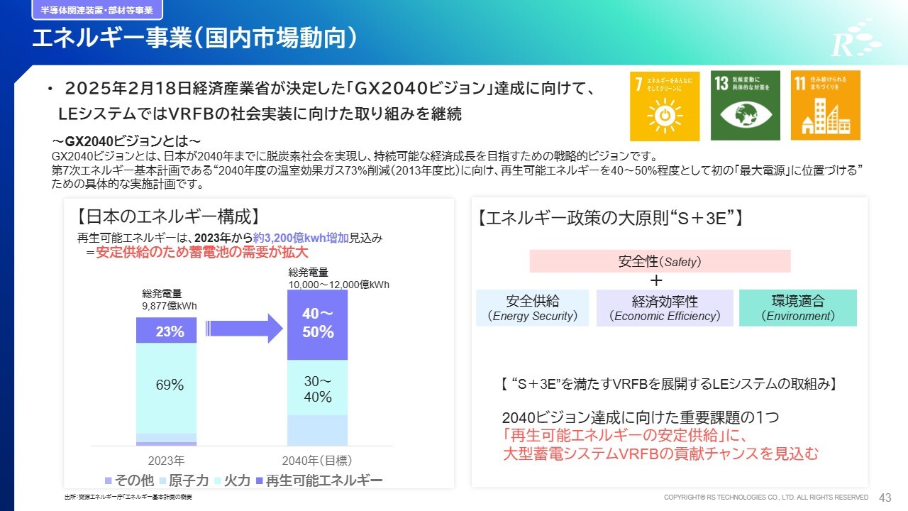 エネルギー事業は、期初にお伝えしていた売上高10億円には数億円届かず、投資フェーズにあることから通期の営業利益はマイナスで着地しました。2026年は、中国で建設中の電解液工場の稼働や電気料金最適化コンサルティングなどを通じて、業績に貢献できるよう努めていきます。