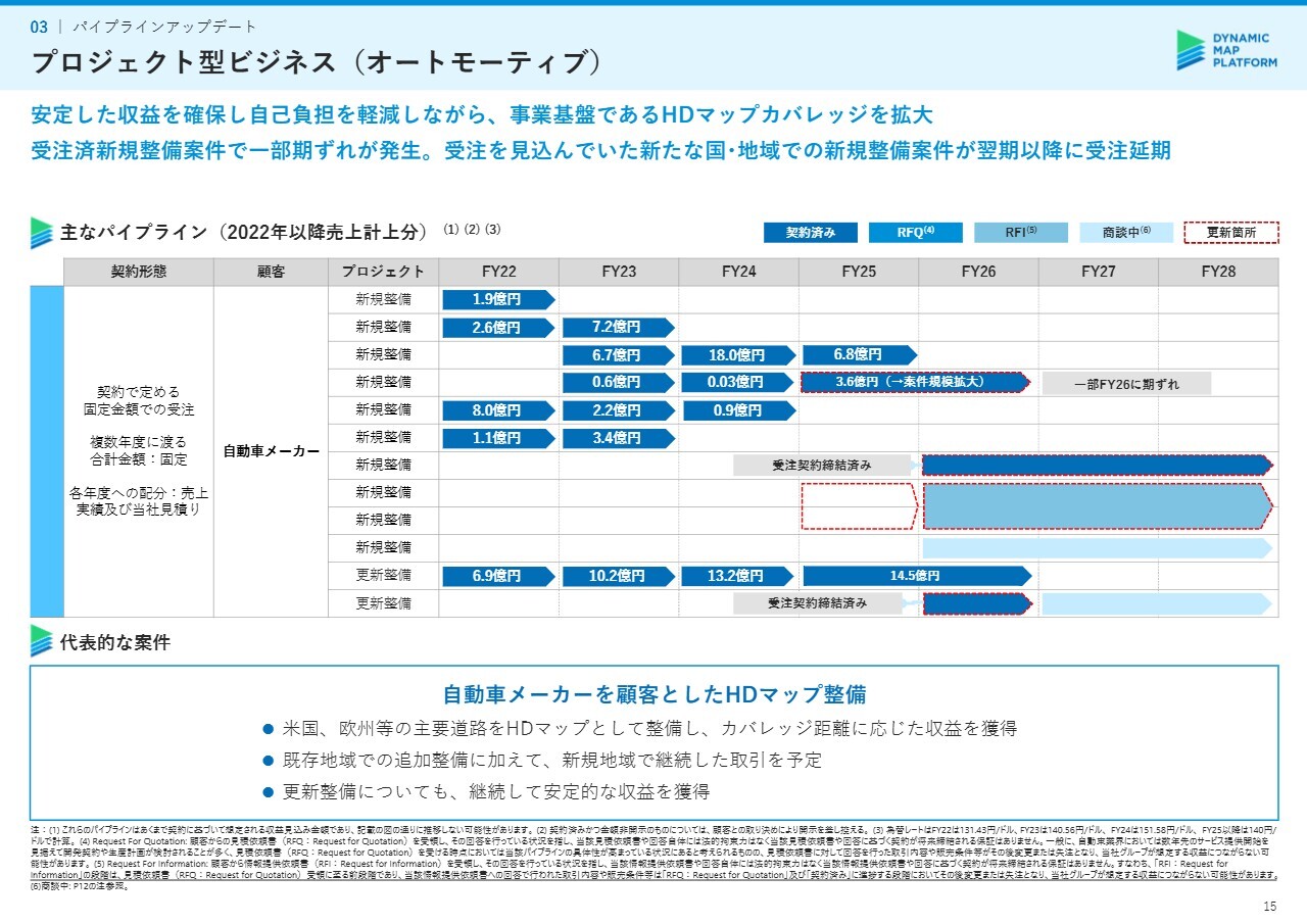 この案件は、すでに受注済みです。ただし、米国子会社であるDynamic Map Platform North Americaは12月決算となっていますので、2025年度、すなわち昨年12月末までの売上計上に間に合わず、期ずれが発生しています。