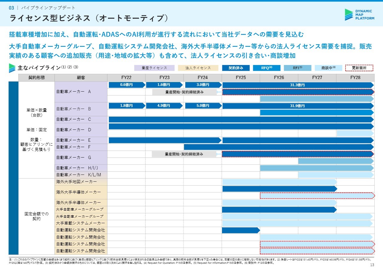 各社との商談を通じて、法人ライセンスに関する当社データへの強い需要を確認しており、パイプラインの案件について新たに記載を追加しました。