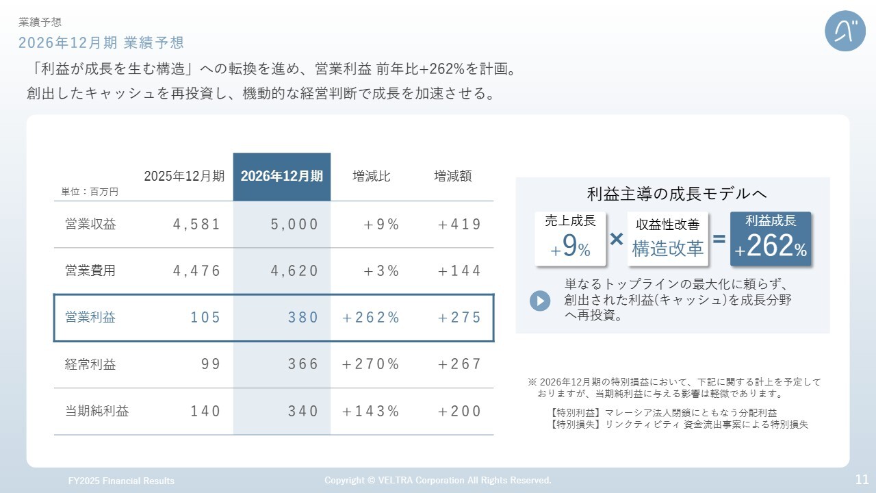 ここで強調したいのは、AI活用やプロセスの自動化により、人員を増やさずに利益率を向上させる効率的な体制を構築できた点です。このようなコストの最適化は今期も継続的に推し進めていきますが、少ないリソースで大きな付加価値を生む筋肉質な収益構造への転換が着実に進んでいると考えています。
