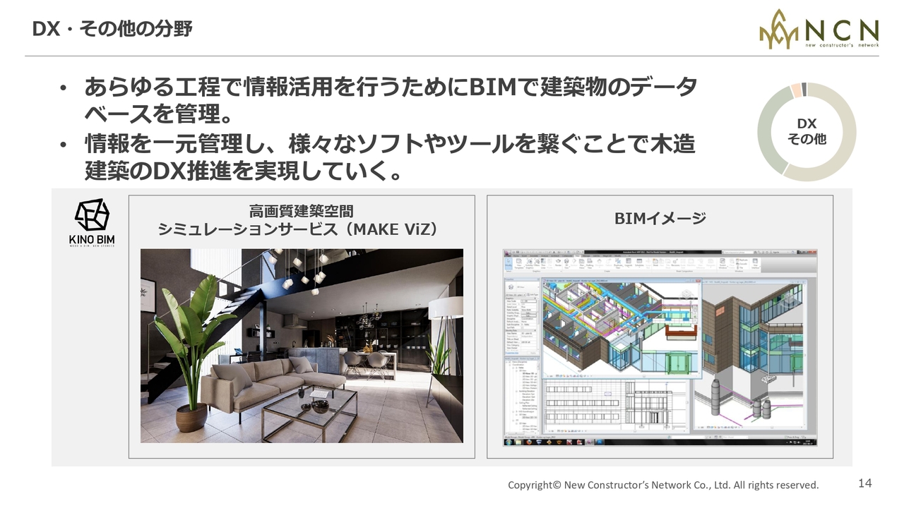 田鎖:DX・その他の分野についてです。3次元でデータをすべて作成しています。現在、住宅だけでなく、一般的に2次元で作られる図面をすべて3次元データに変換し、保存しています。