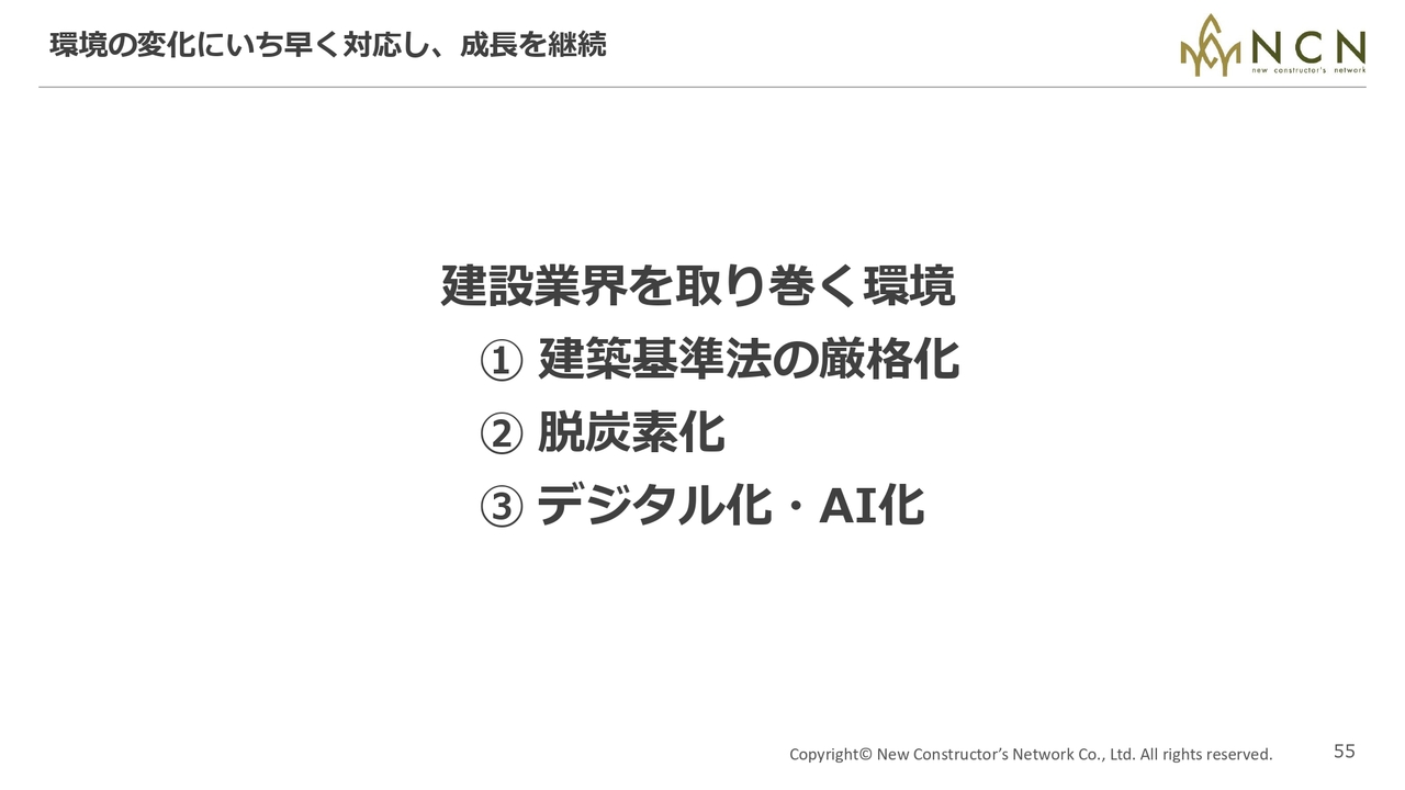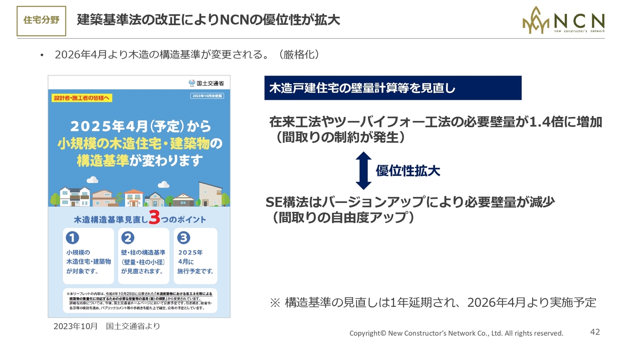 したがって、今後建築基準法はますます厳格化されていくと思います。我々はそれを予見したわけではありませんが、そのような世界を夢見てこれまで活動を続けてきました。その結果、我々の取り組みがだんだんと世の中のスタンダードに近づいており、肯定的な影響が出ていると考えています。