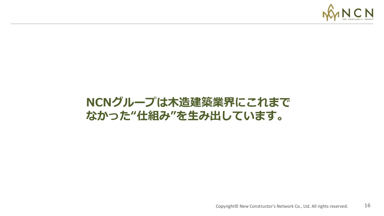 NCNグループは木造建築業界にこれまでなかった“仕組み”を生み出しています。