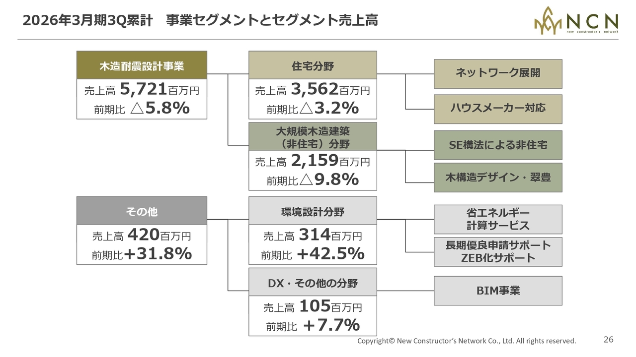 田鎖郁夫氏(以下、田鎖):株式会社エヌ・シー・エヌ代表取締役社長執行役員の田鎖郁夫です。本日はご視聴いただき、誠にありがとうございます。2026年3月期第3四半期の決算内容についてご説明します。