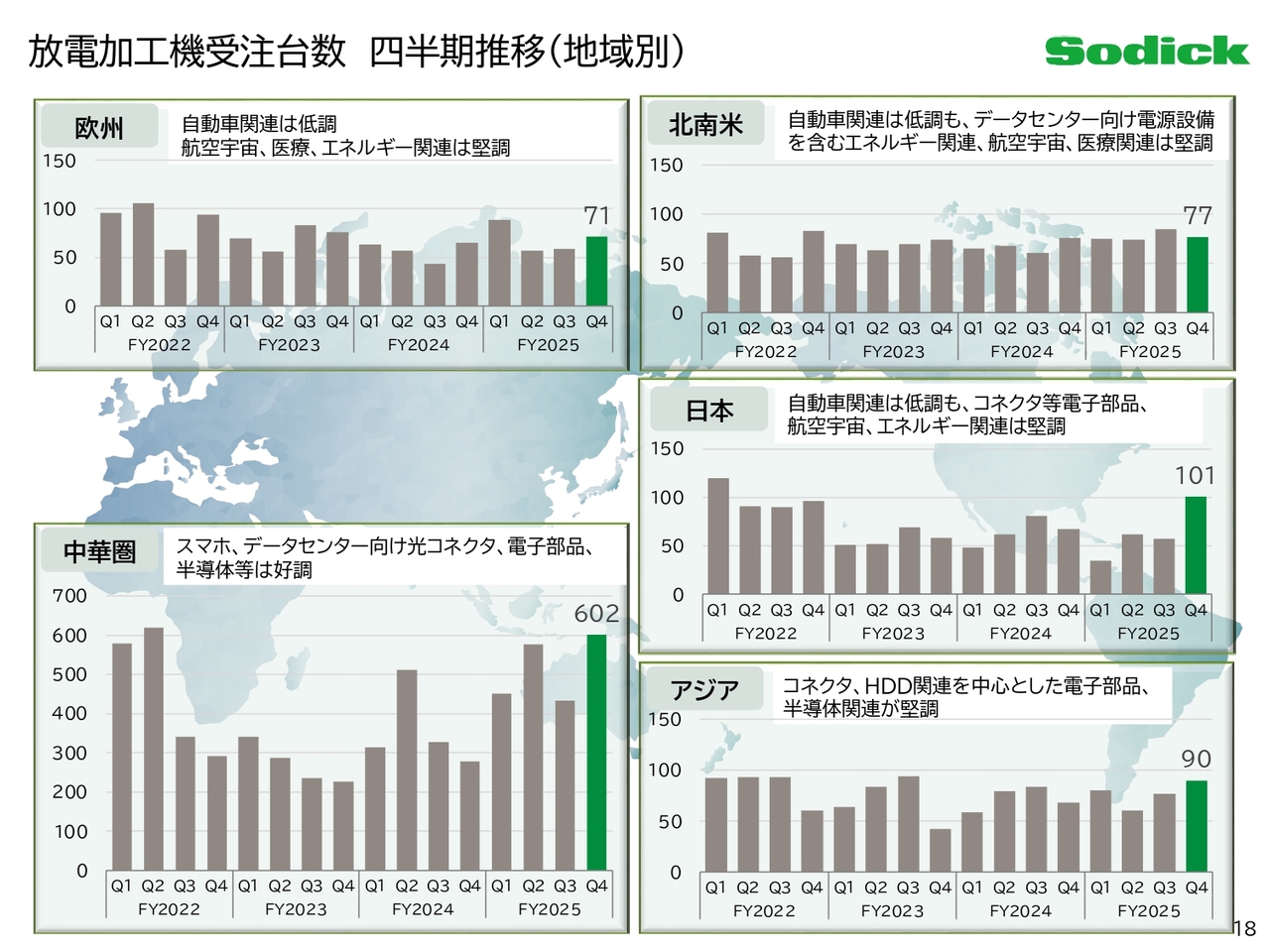 しかし、時代は大きく変わり、中国は依然として最大市場ではあるものの、2018年当時のような活況は見込めないと判断しています。2025年12月期の放電加工機販売台数は3,000台をやや下回る水準で推移しており、かつての中国一辺倒の成長モデルは通用しなくなっています。その結果、2023年12月期には中国の影響で業績が大きく悪化しました。
