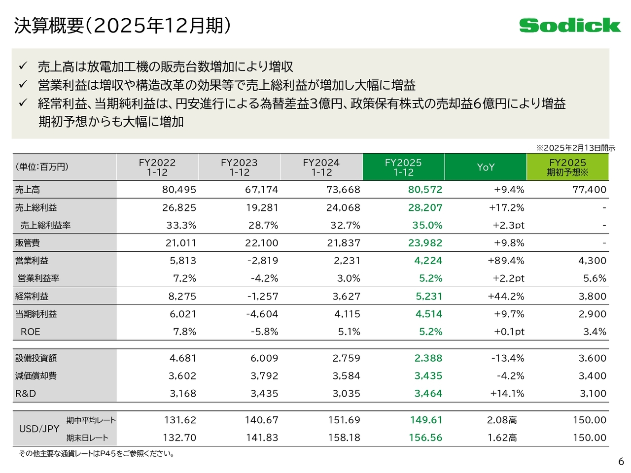 ソディック(6143) 2025年12月期 決算説明資料 02/17 15:00