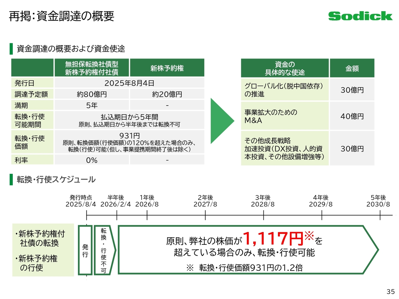 資金調達の概要については、昨年7月に開示した内容を再掲します。こちらも要点のみをご説明します。
