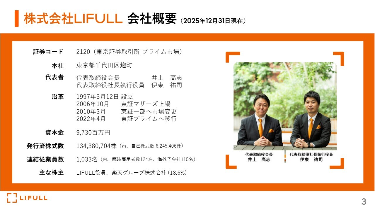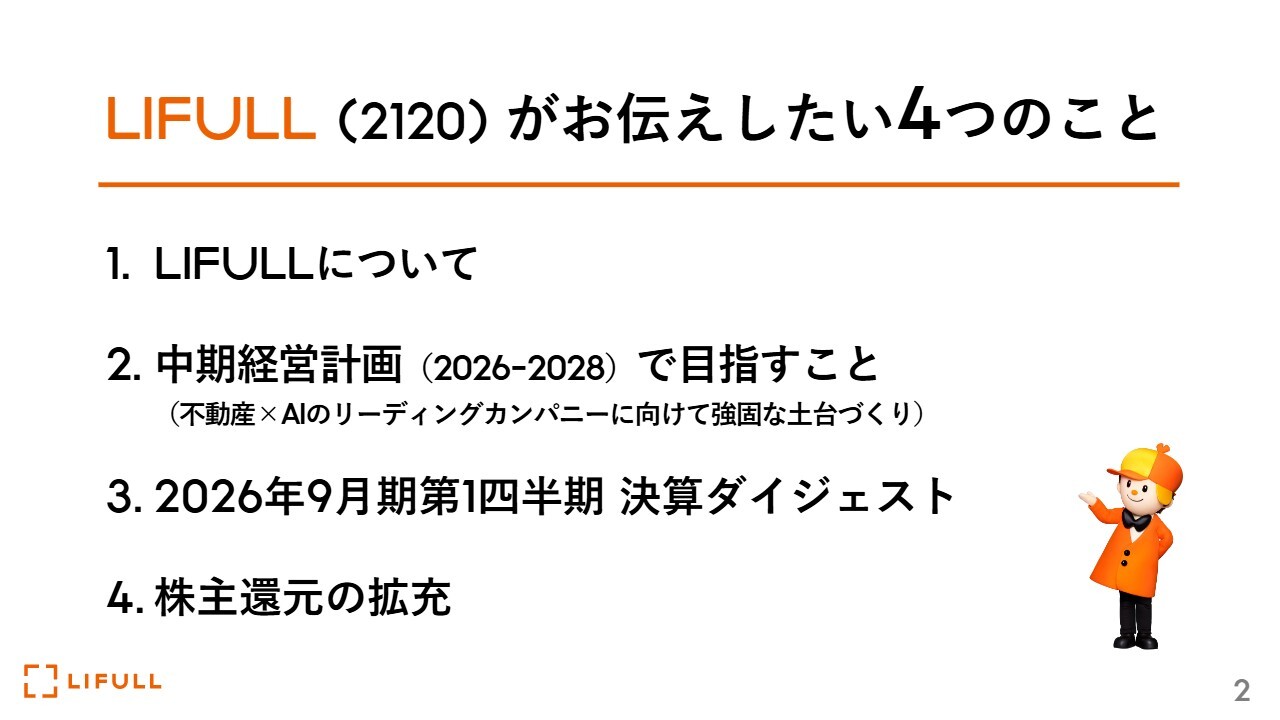1つ目は、LIFULLについて知らない方もいらっしゃると思いますので、私たちの強みや会社の概要について、まずご理解いただきたいと思います。