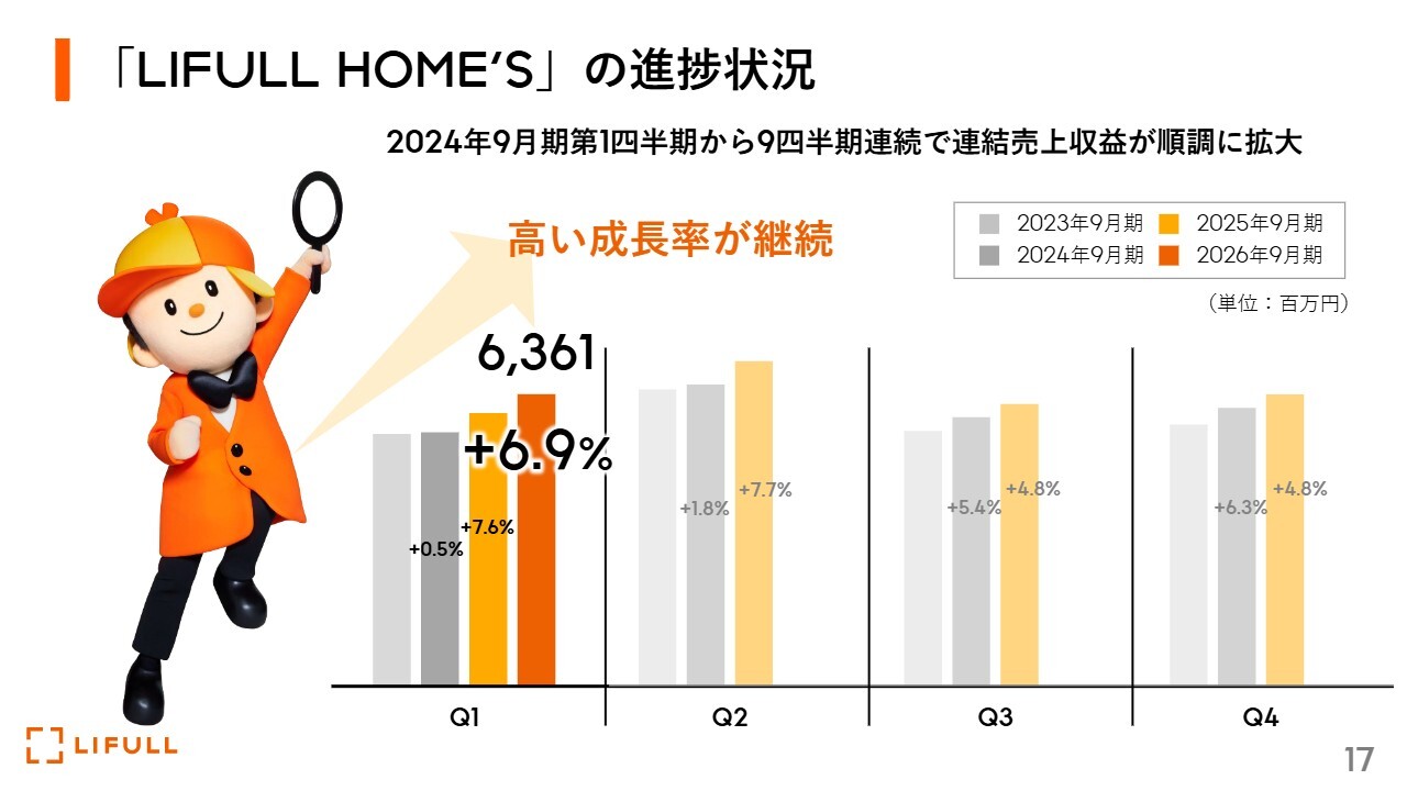 私たちは主力の「LIFULL HOME'S」について、まだまだ伸びしろがあると考えています。足元では継続的に増収となり、売上高が増えてきています。