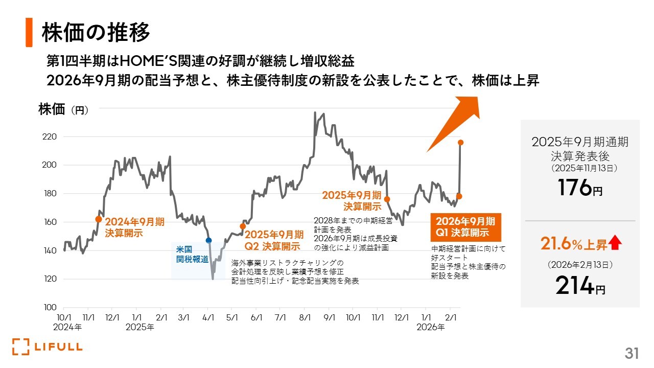 回答:2026年9月期第1四半期の決算の進捗が好調だったことと、配当予想の開示、株主優待の新設等が市場から評価いただけた結果かと思っています。