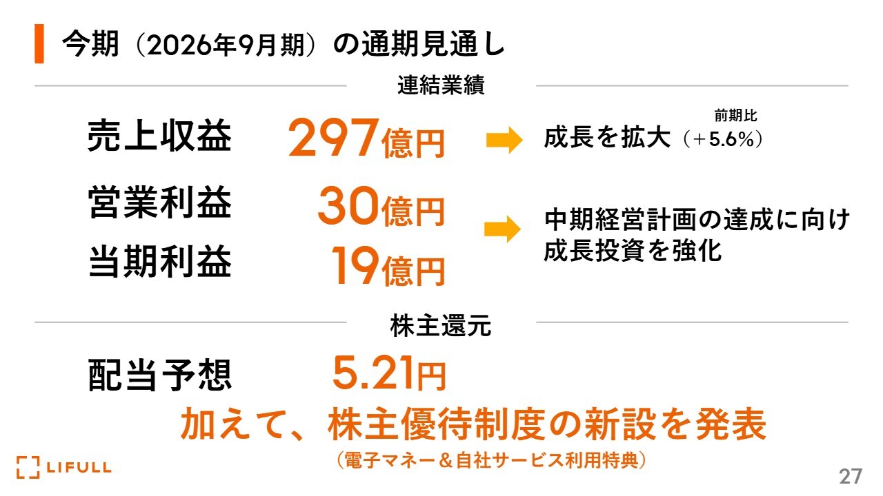 今期(2026年9月期)の通期見通し