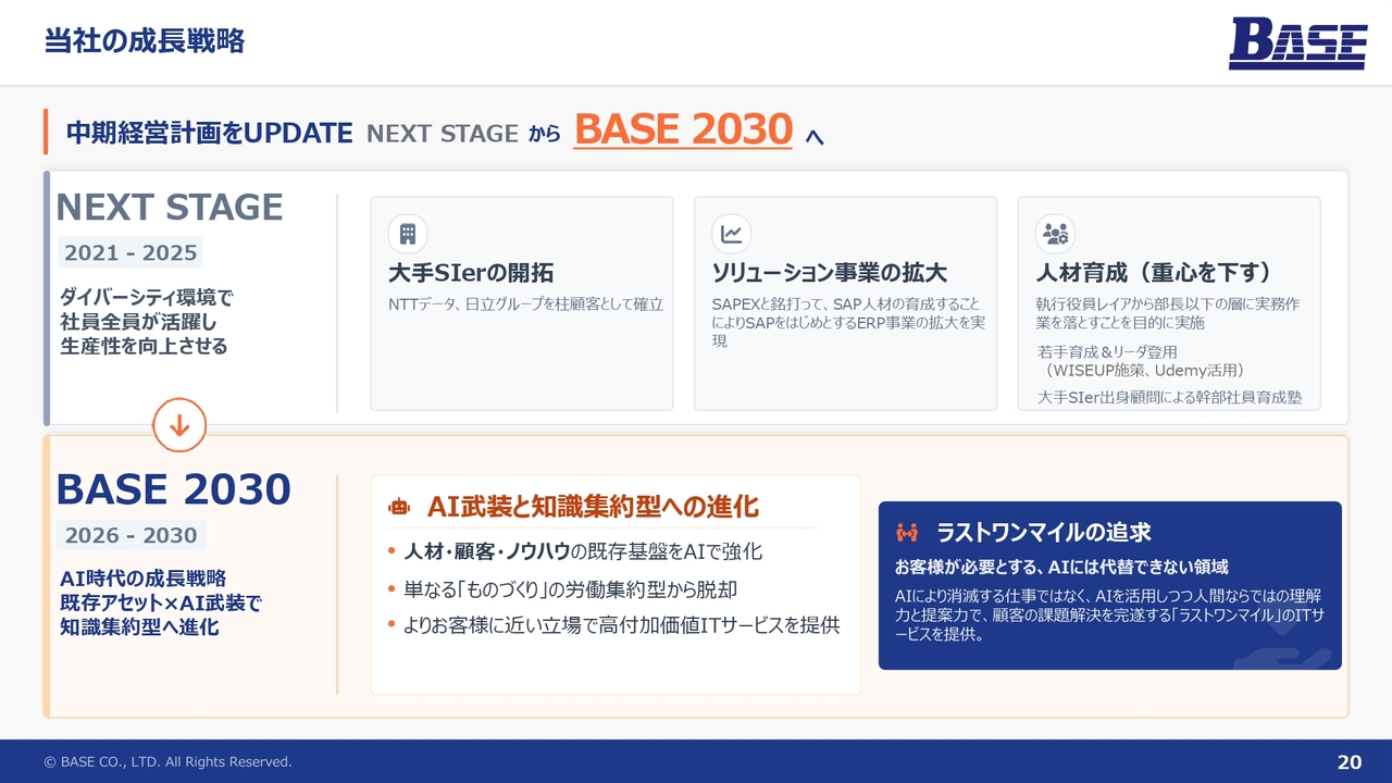 次の5年間については、コードネーム「BASE 2030」のもと、今年から2030年までを見据えた計画となります。