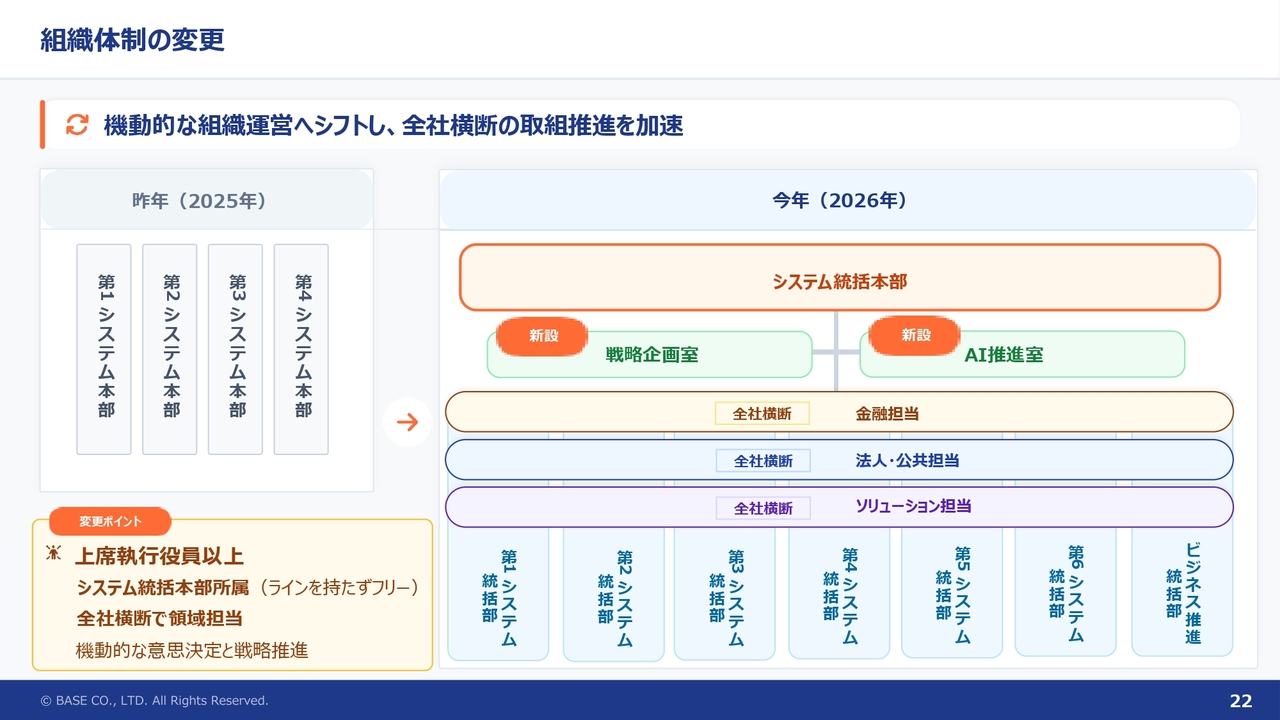 さらに、当社は先週末にIRを実施し、新たにAI推進室を設置しました。このAI推進室についても、上席執行役員が担当し、本格的にAIを活用した取り組みを加速させていきます。