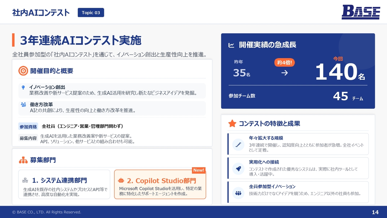 このように、当社はAI技術の最前線で新しい技術に積極的に取り組んでおり、全社イベントとして非常に活発に活動しています。