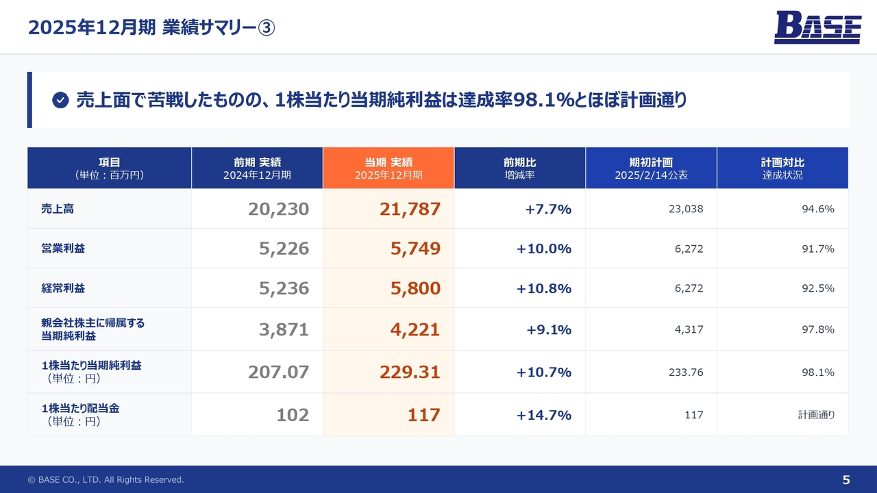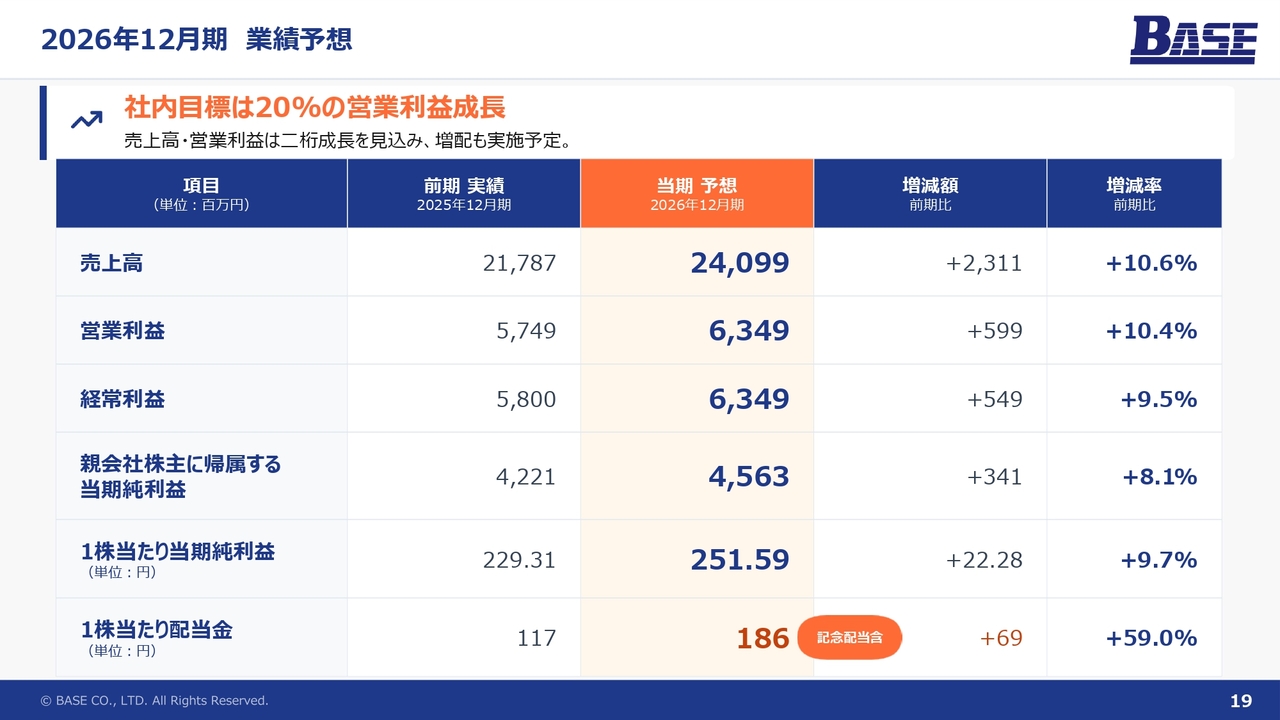 ベース、売上高、営業利益が過去最高更新 AI推進室新設、今期は増配及び30周年記念配当を計画