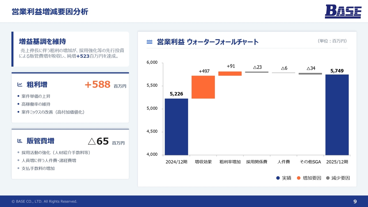 利益の分析についてです。結果はスライドに記載のとおりです。