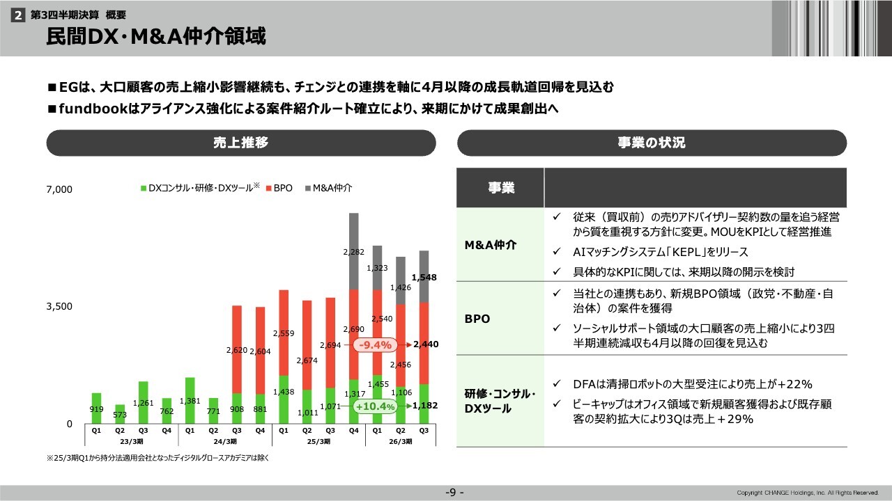 BPO事業についてです。特にイー・ガーディアンの領域では、当社との連携もあり、政党、不動産、自治体といった新領域での案件獲得が進んでいます。