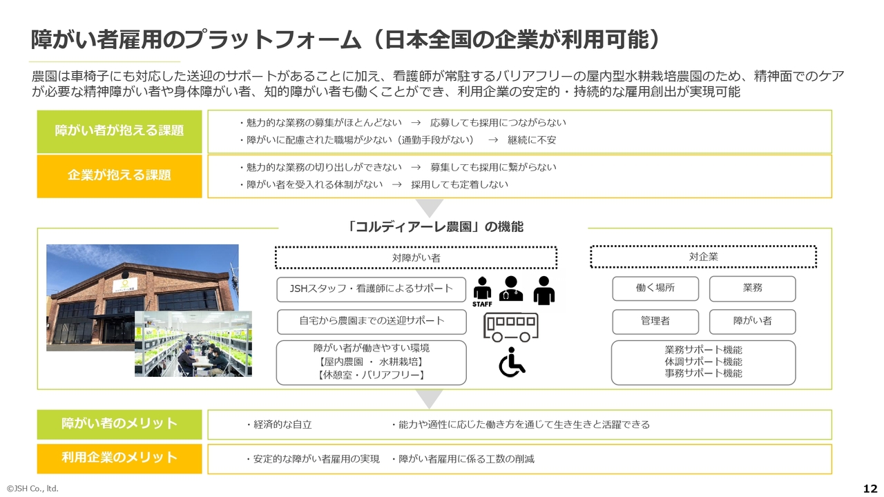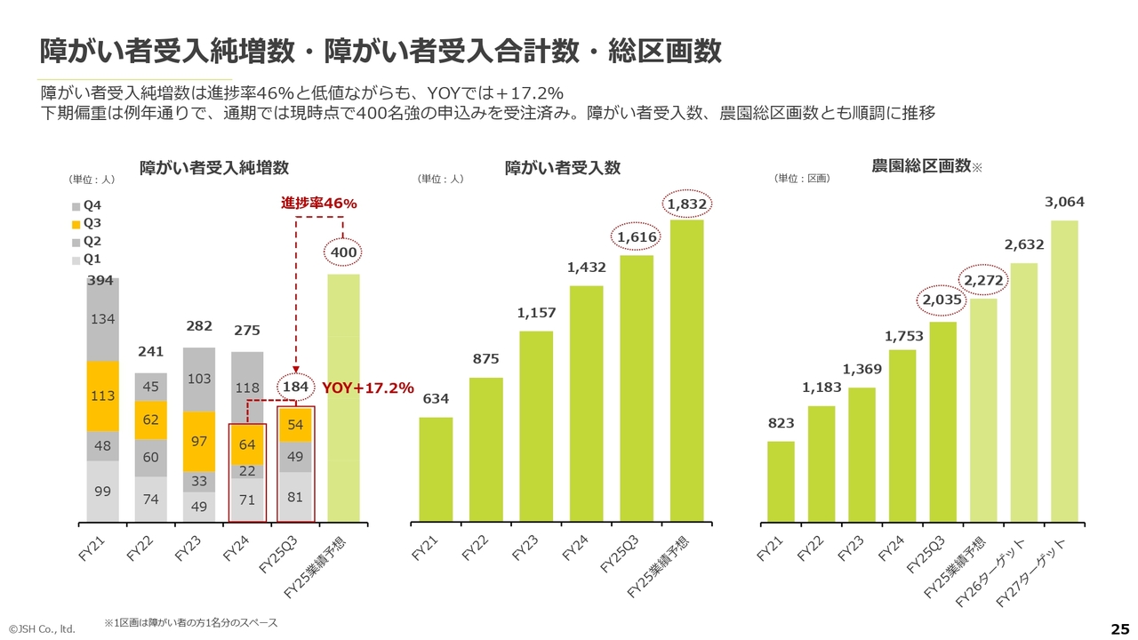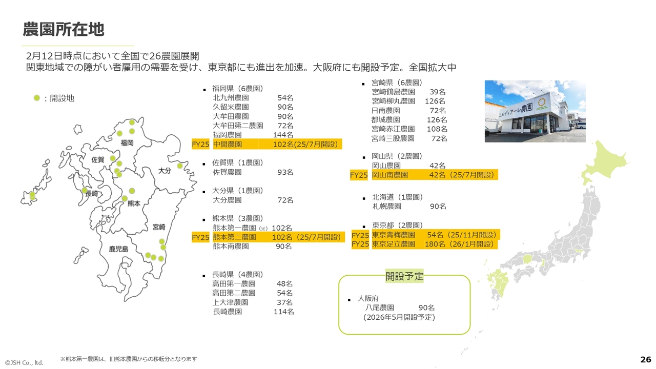 社内では、この取り組みをいわゆる「貸し農園型」ではなく「支援型」と呼称しており、今後規制や運用の強化が進む中で、当社の支援型モデルの必要性がより高まると考えています。引き続き、厚生労働省の制度や趣旨に沿った運営を行うことが重要だと考えています。