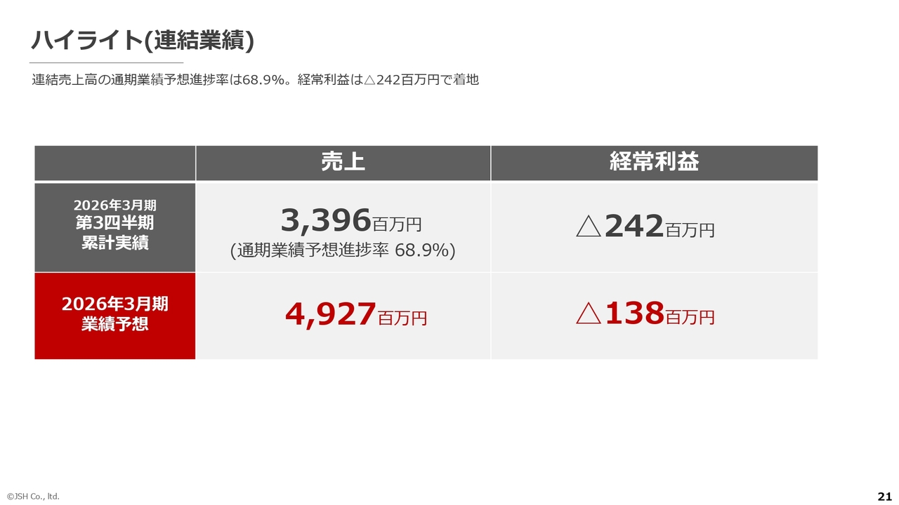 JSH(150A) 2026年3月期第3四半期決算説明資料抜粋スマホ向け 02/12 15:30