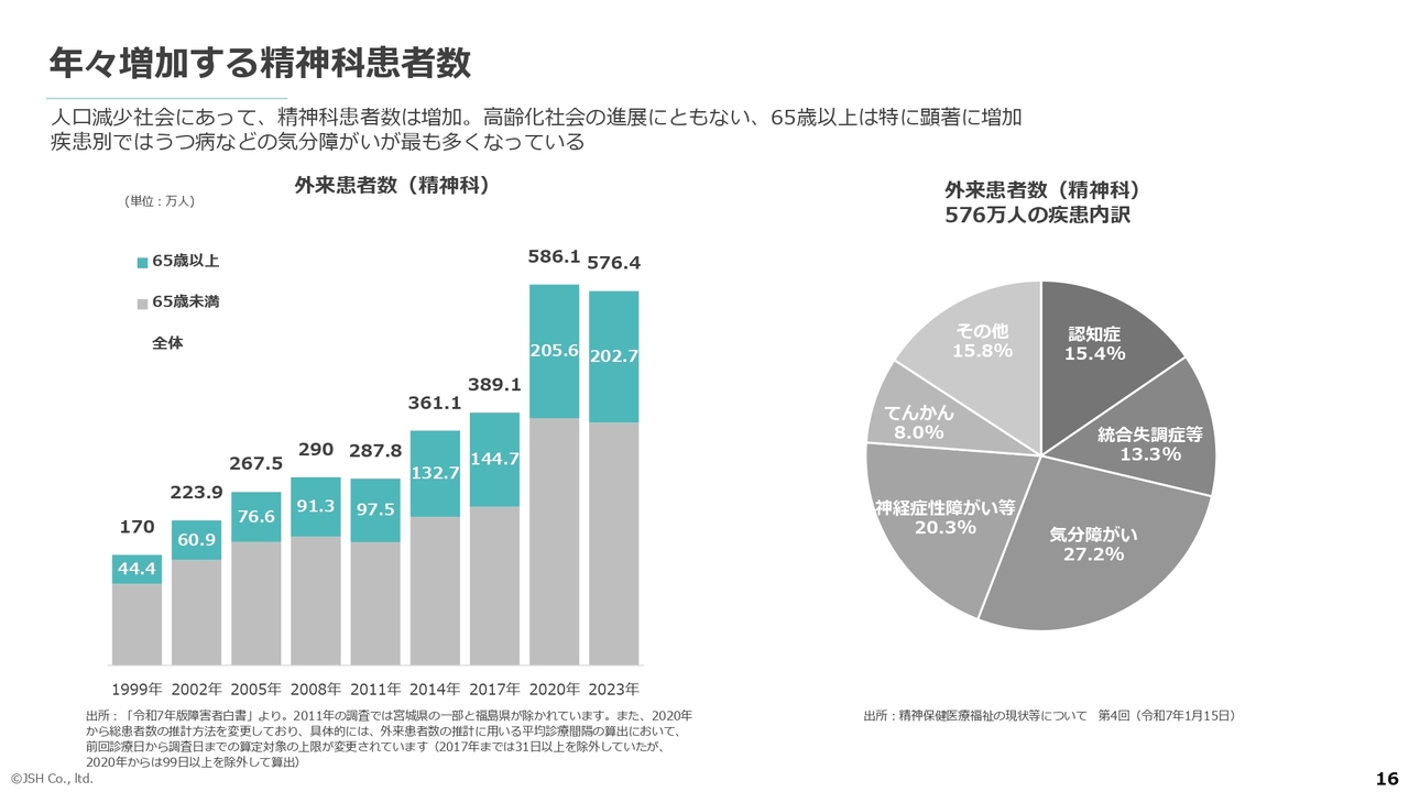 在宅医療事業の外部環境に関しては、精神科の患者数が年々増加しており、中でも65歳以上の高齢者が増えています。外出が困難な高齢者も増えていることから、自宅を訪問できる医師や看護師の存在がますます重要になってきており、精神科の在宅医療へのニーズが増加していることを実感しています。