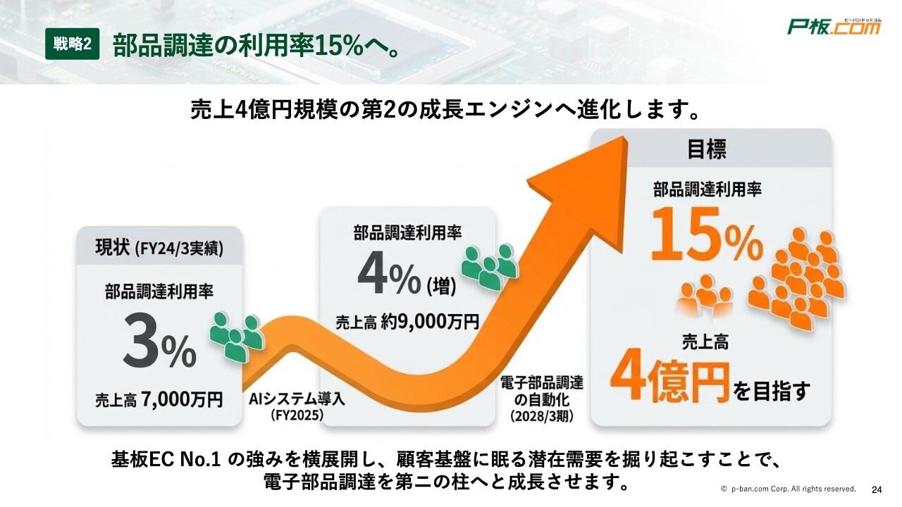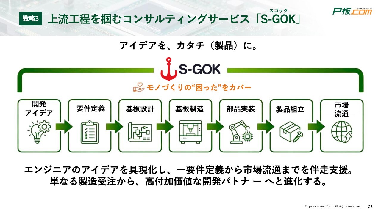 具体的には、プリント基板の上には必ず半導体や電子部品が使われるため、それらを当社の倉庫でお預かりし、必要に応じて補充を行ったり、当社で製造したプリント基板の上に保管している半導体や部品を実装し、お客さまのお手元に納品したりという流れを、まずは行いたいと考えています。