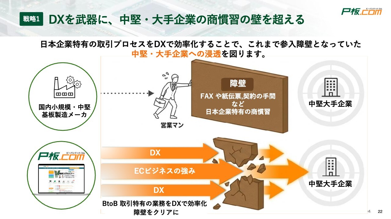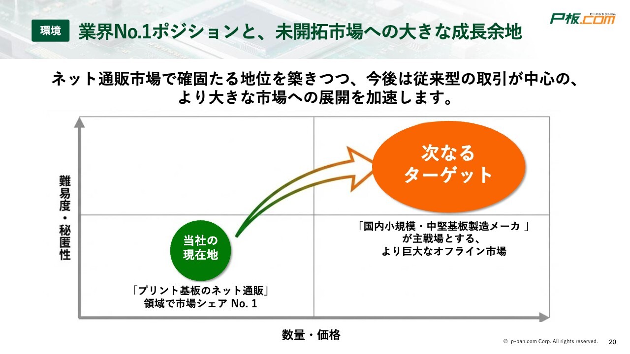 枕詞にある「P板」という商材が、当社唯一の商材です。一般的なEコマースといえば、さまざまな商材を取り扱いモール化するイメージを持たれると思いますが、当社はこの「P板」1つの商材に特化しています。