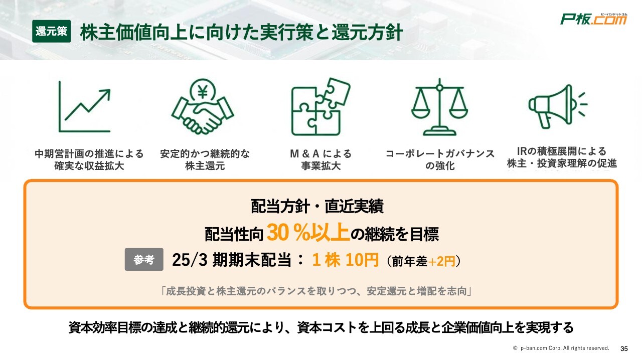 司会者:「これからの配当方針や増配などの見通しについて教えてください」というご質問です。