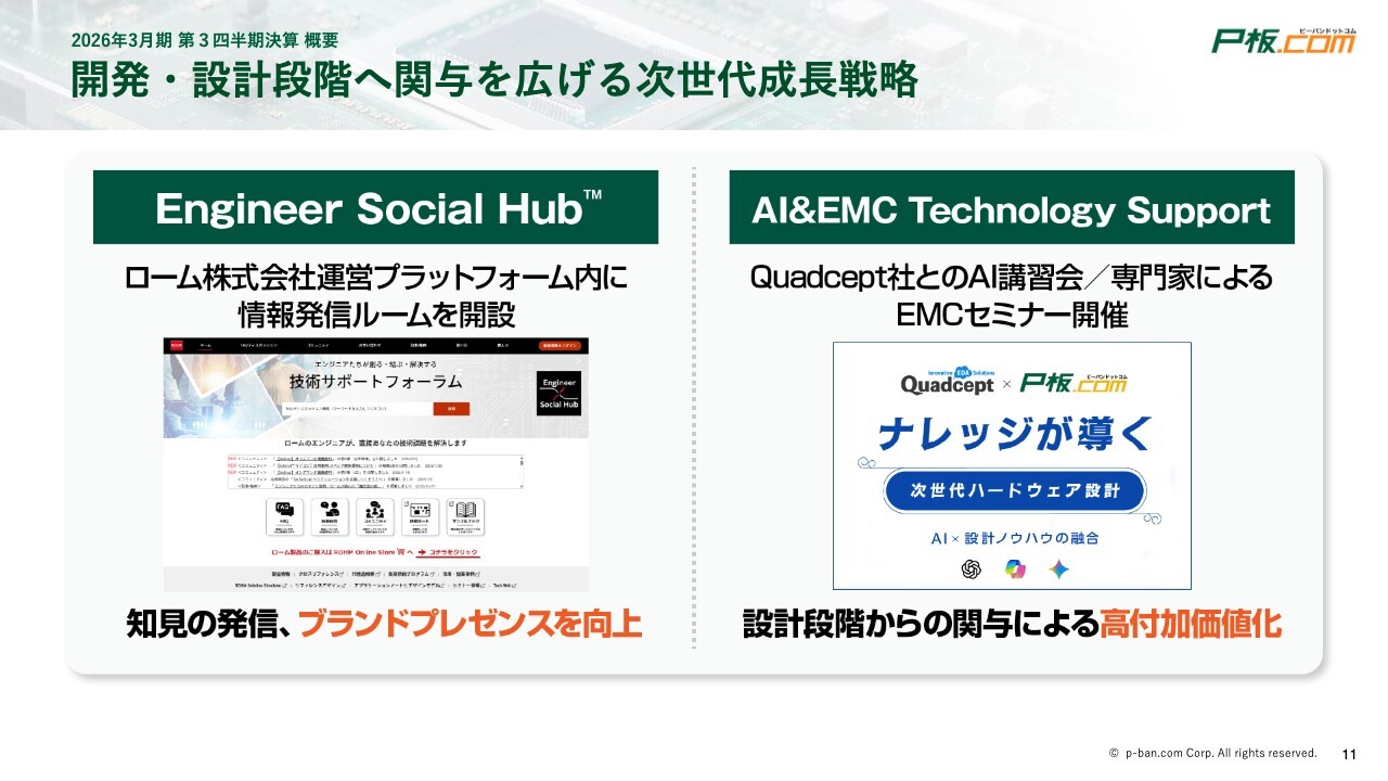 司会者:続いては、製造だけでなく開発・設計段階にも関与を広げる点についてです。それぞれご説明をお願いします。