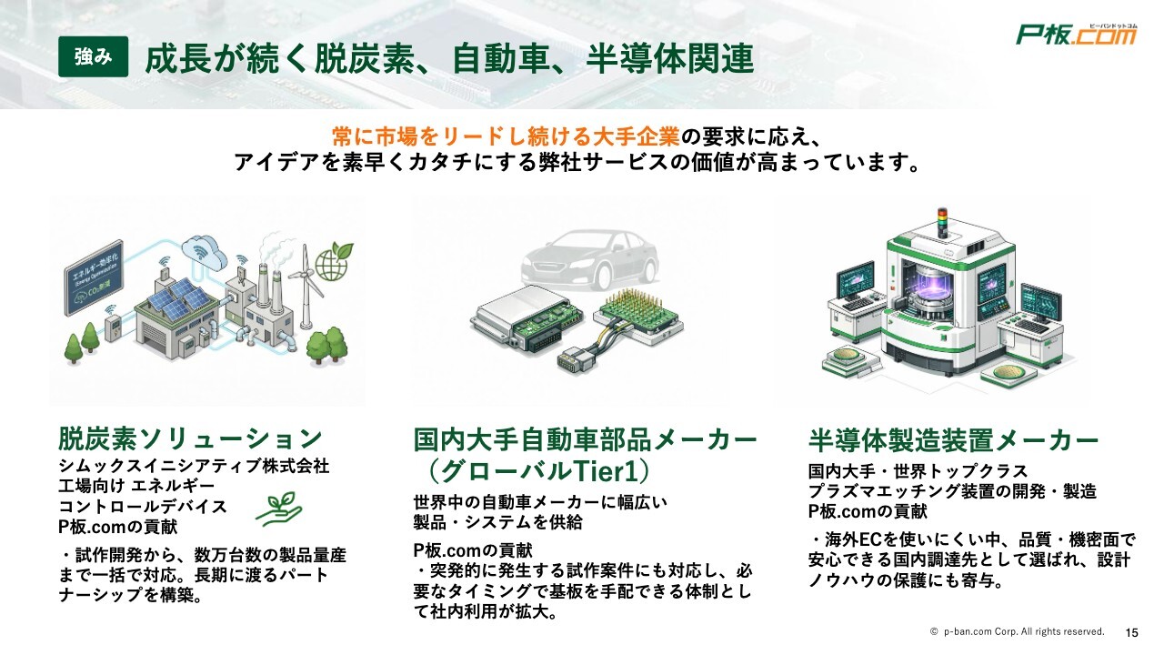 司会者:次の資料は、少し新しくなったようですね。御社の強みとして、成長市場での実績がある点について、それぞれ詳しくお話しいただけますか?