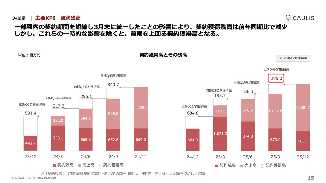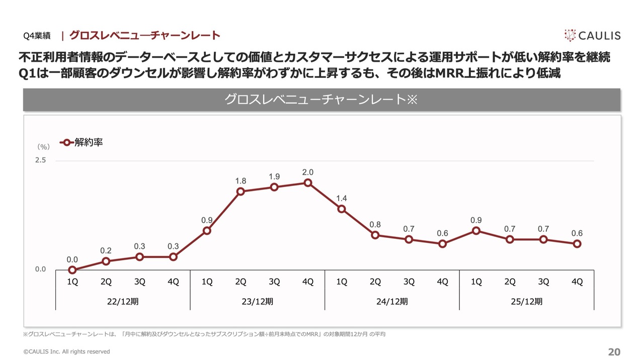 なお、2025年については、契約更新のタイミングを3月に集約する方針を取っています。その過程で一部の顧客について契約期間を一時的に短縮しているため、前年と単純に比較をするのが難しい状況となっています。これは、あくまでも契約管理上の調整によるものです。
