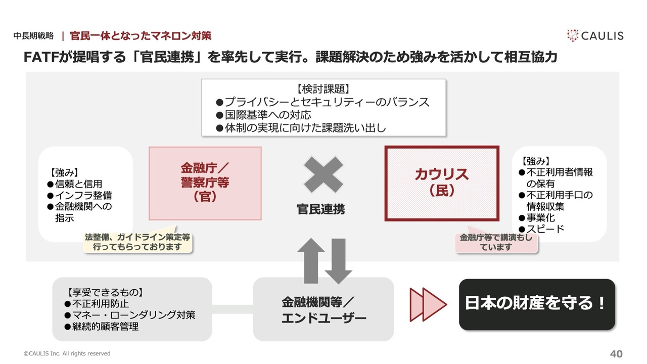 私たちのサービスが普及することで、国民の財産を守ることができるようになります。この連携を今後さらに深めていくことを目指しています。