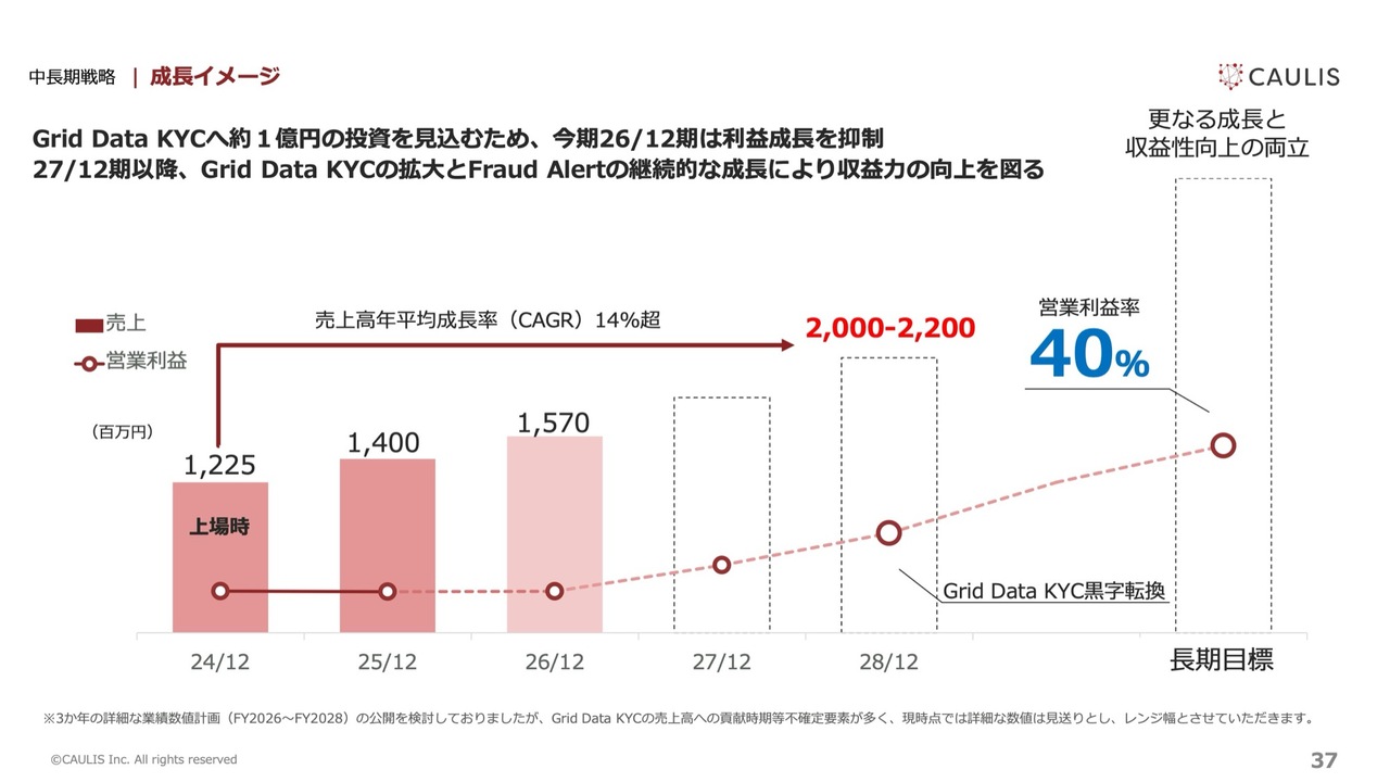 CAGR(年平均成長率)は約14パーセントと考えており、さらに「Grid Data KYC」が加わることで、トップラインがもう少し伸びる見込みです。