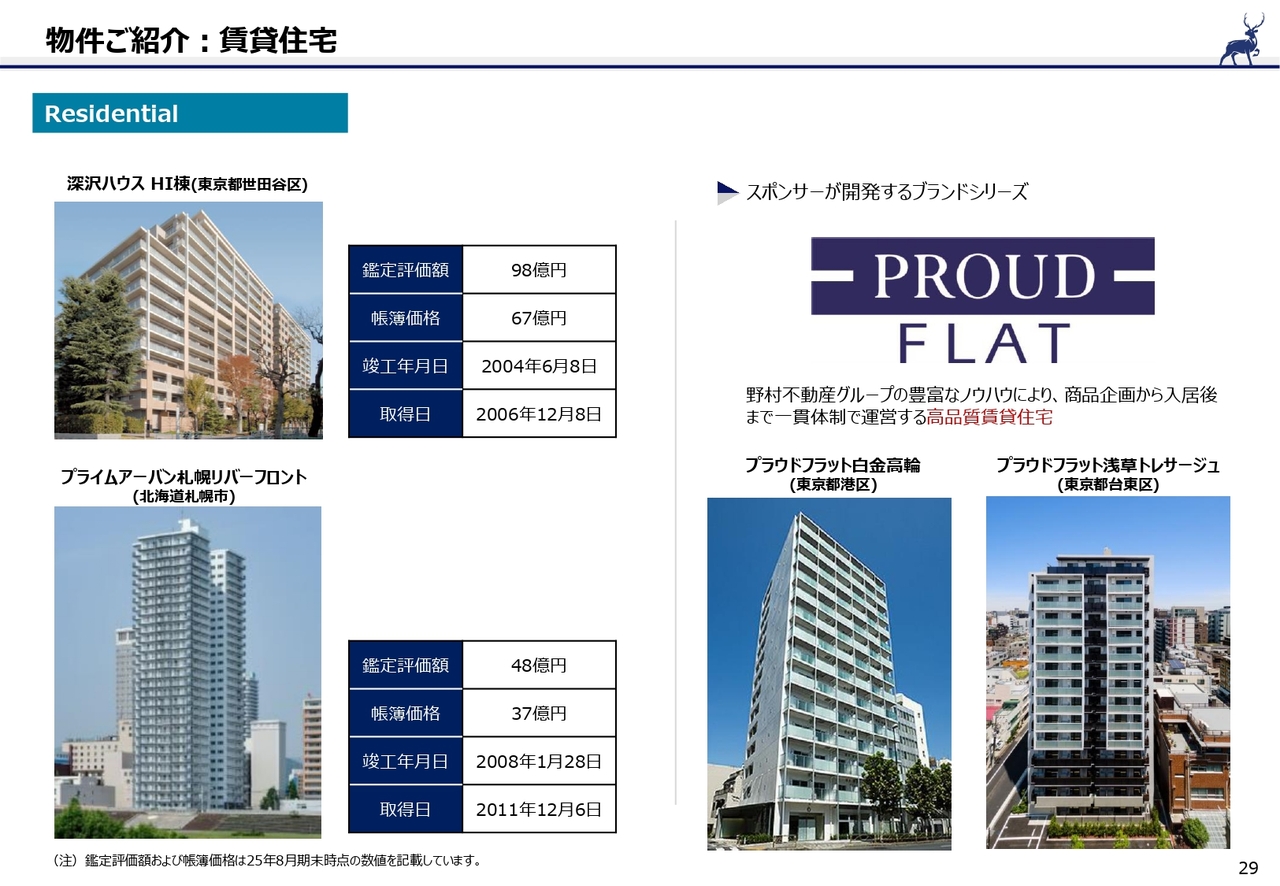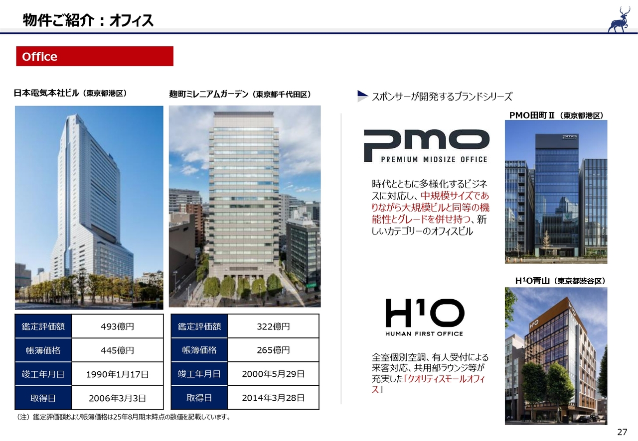 このような物件を厳選しながら購入を進めていきたいと考えており、先日もオフィスの「H¹O」や賃貸住宅の「プラウドフラット」を取得しました。