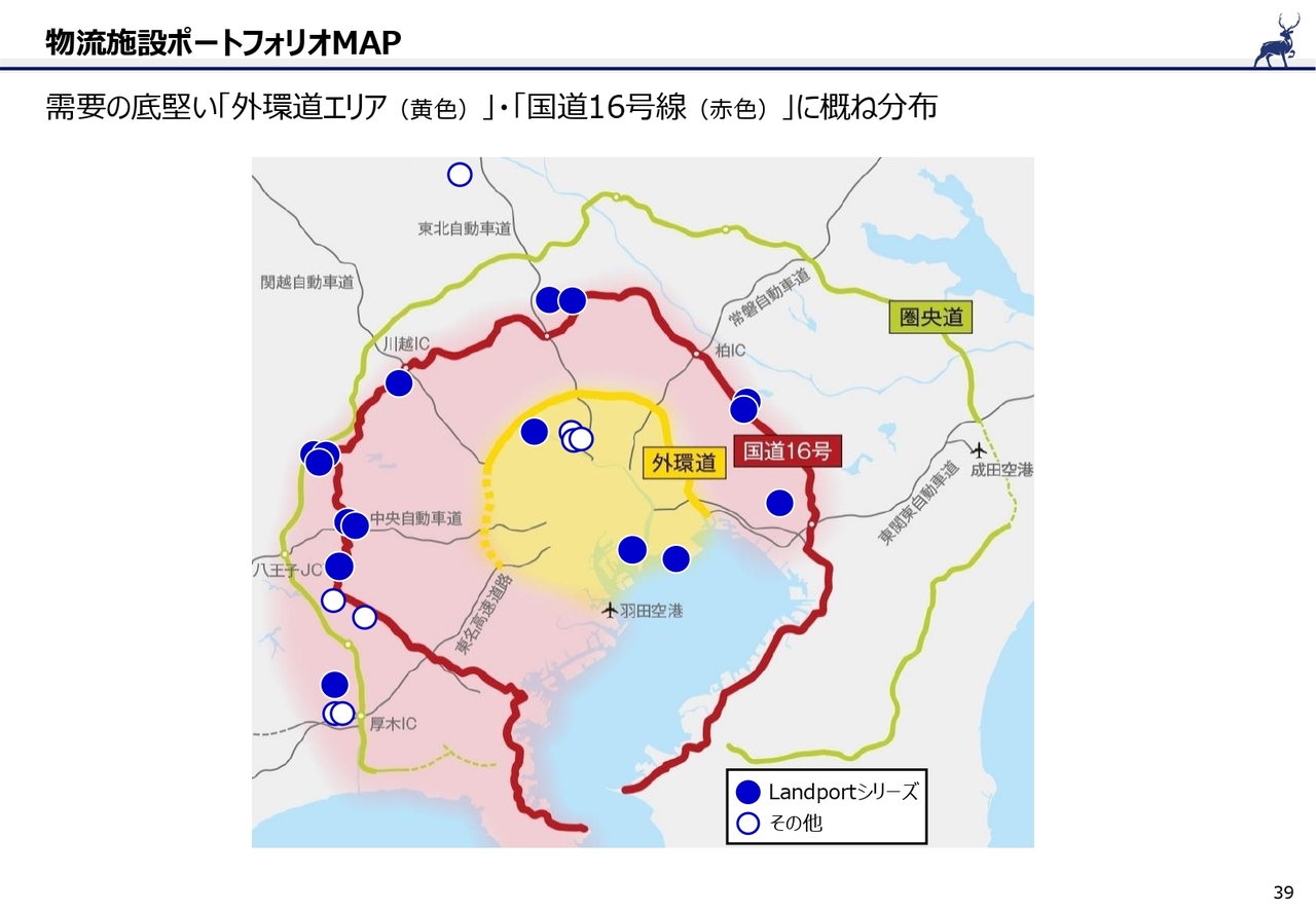 増子:ご指摘のとおり、近年、物流施設の新規供給はここ3年ほど多い状況が続いています。スライドの地図にあるように、緑色の線で示した圏央道沿いでは供給が非常に多く、空室数が増加しており、その消化に時間がかかっています。