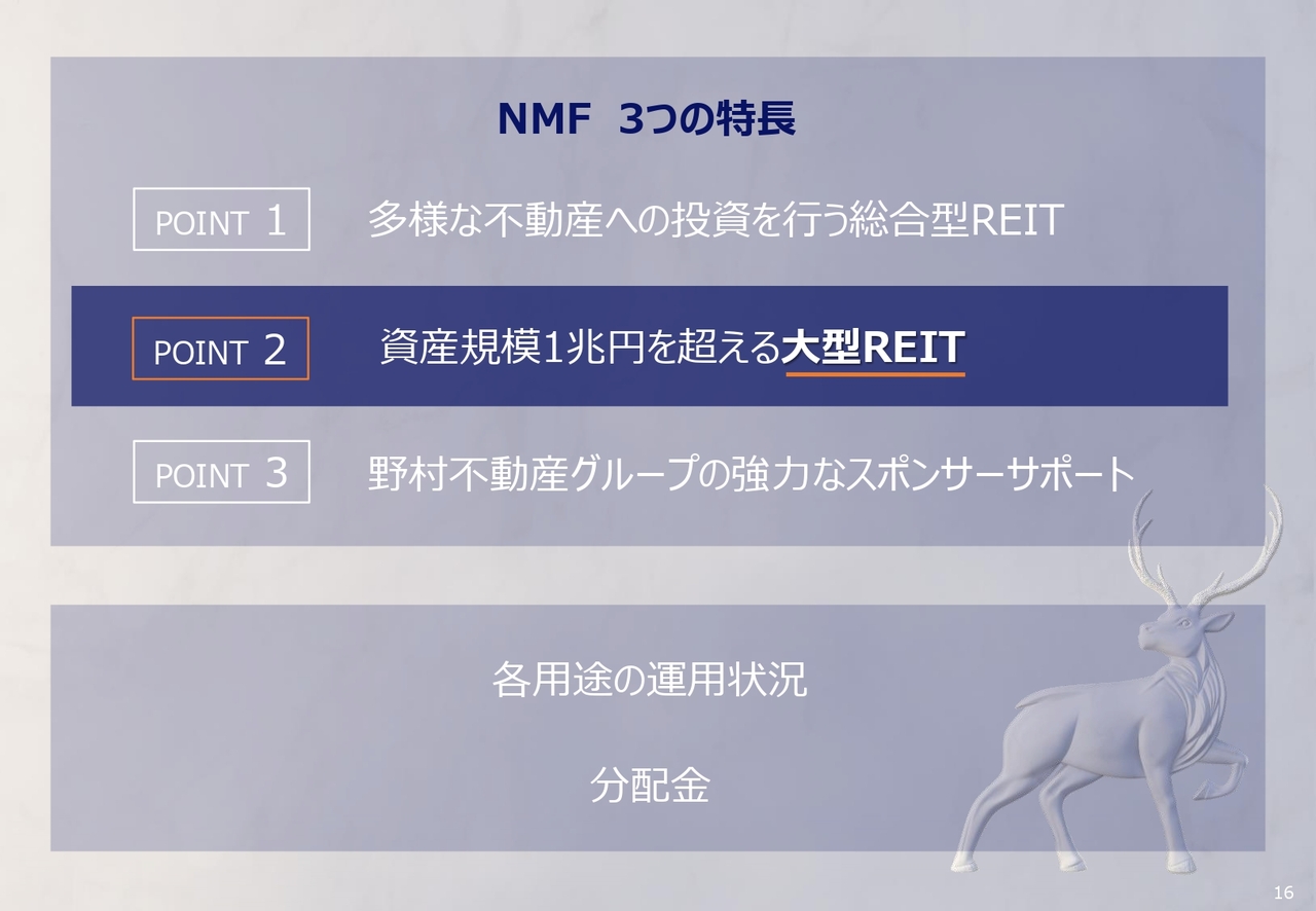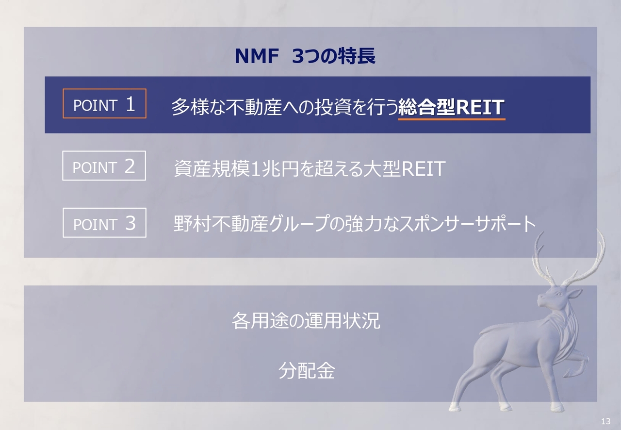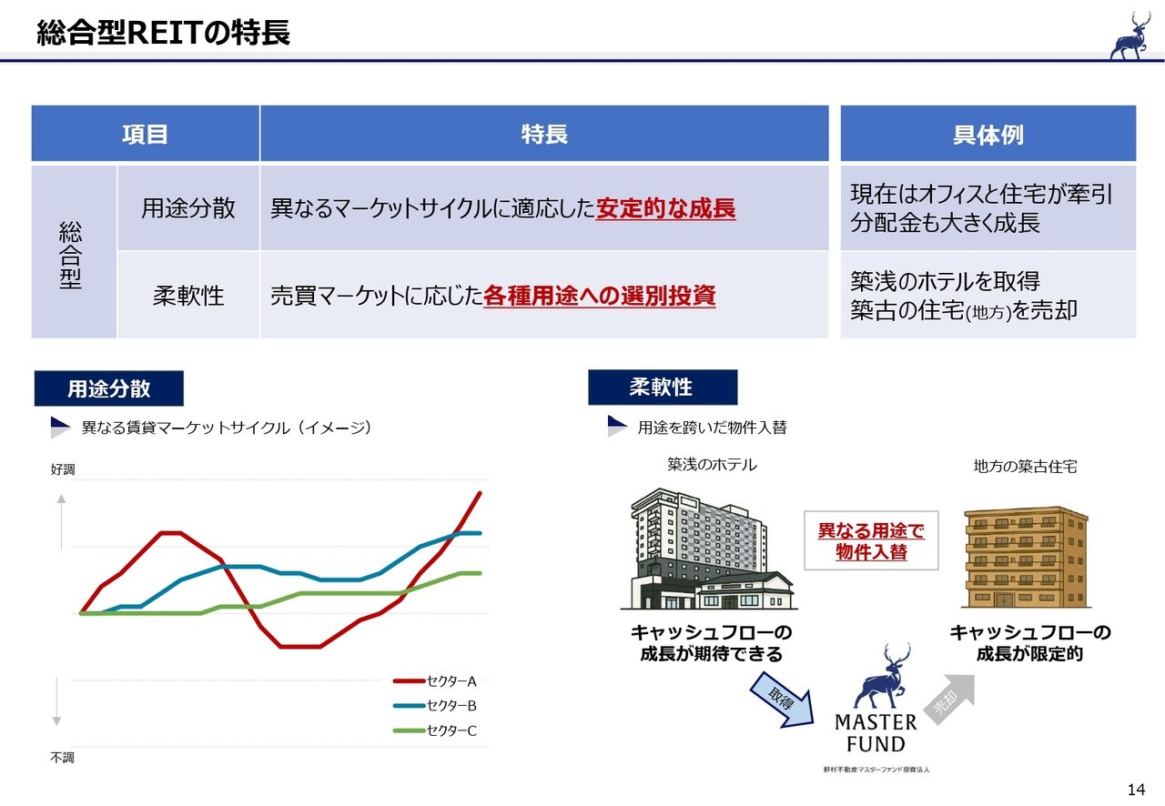 総合型REITを選ぶ際の判断軸や御社の立ち位置、特長を教えていただけますか?