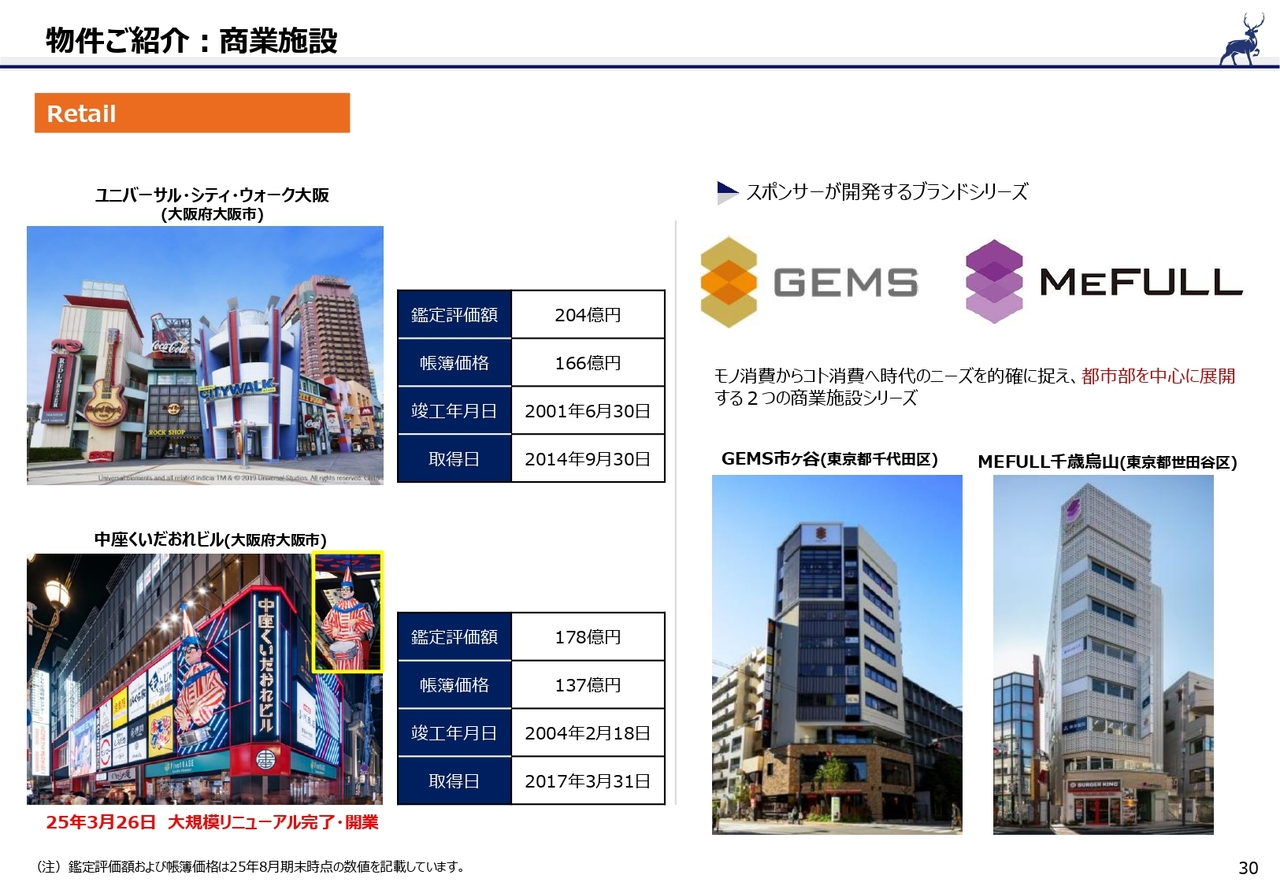 増子:商業施設です。大阪の方には馴染みがあるかもしれませんが、スライド左側の「ユニバーサル・シティ・ウォーク大阪」は、USJに隣接しています。