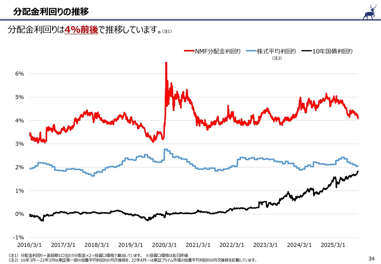 増子:次に、投資家のみなさまの関心が高いと思われる分配金利回りについてです。