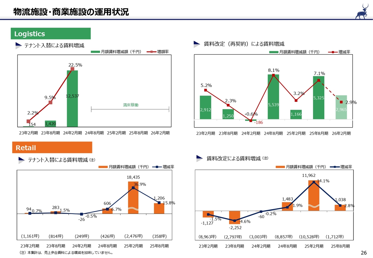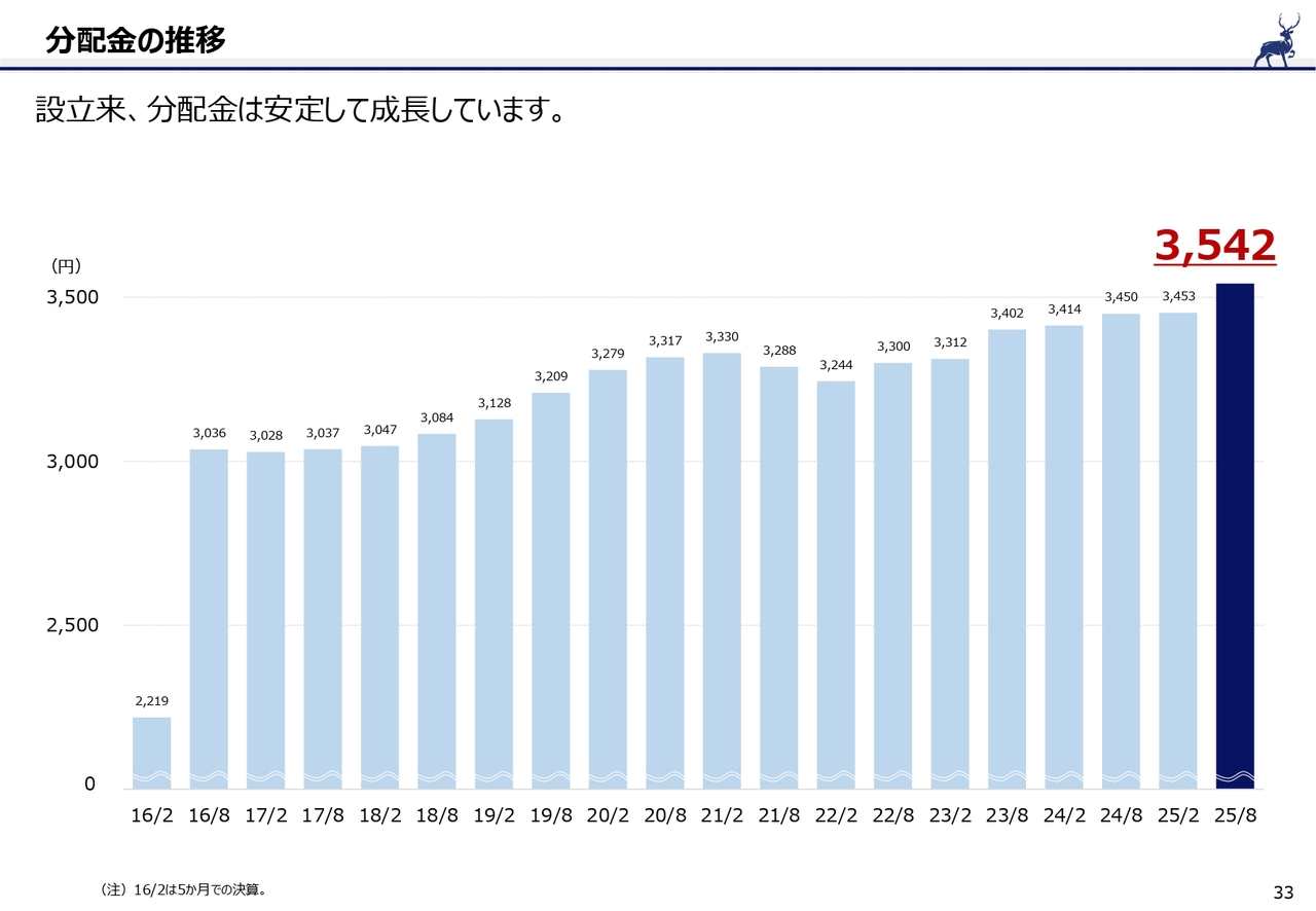 したがって、翌期や翌々期も大きな解約などが発生しない限り、賃料収入に大きな変動はないため、分配金は長期的に維持しやすいと考えています。