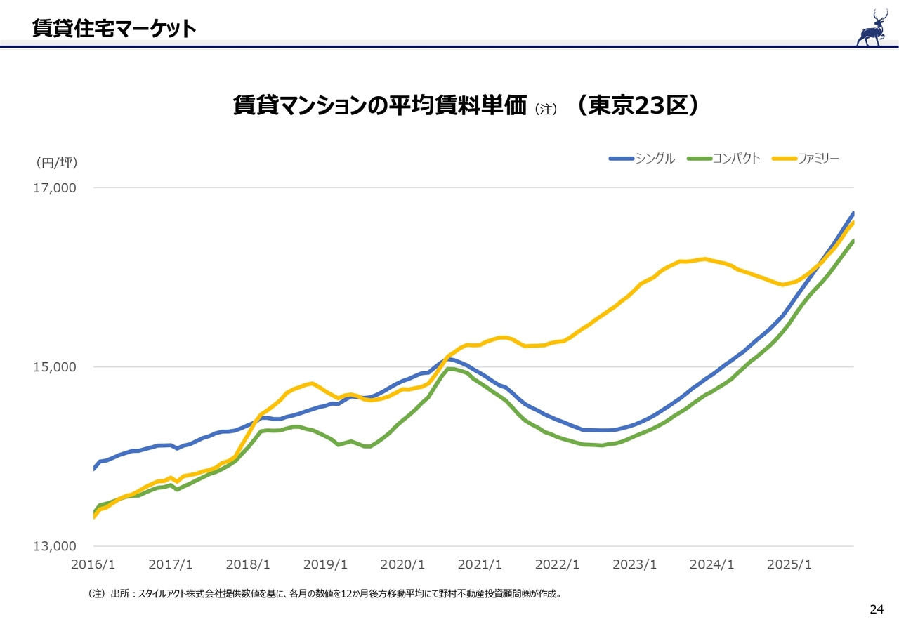 回答:昨年は新規供給が多い時期でしたが、2026年以降の新規供給は建築費上昇の影響もあり、落ち着いてくる見通しです。