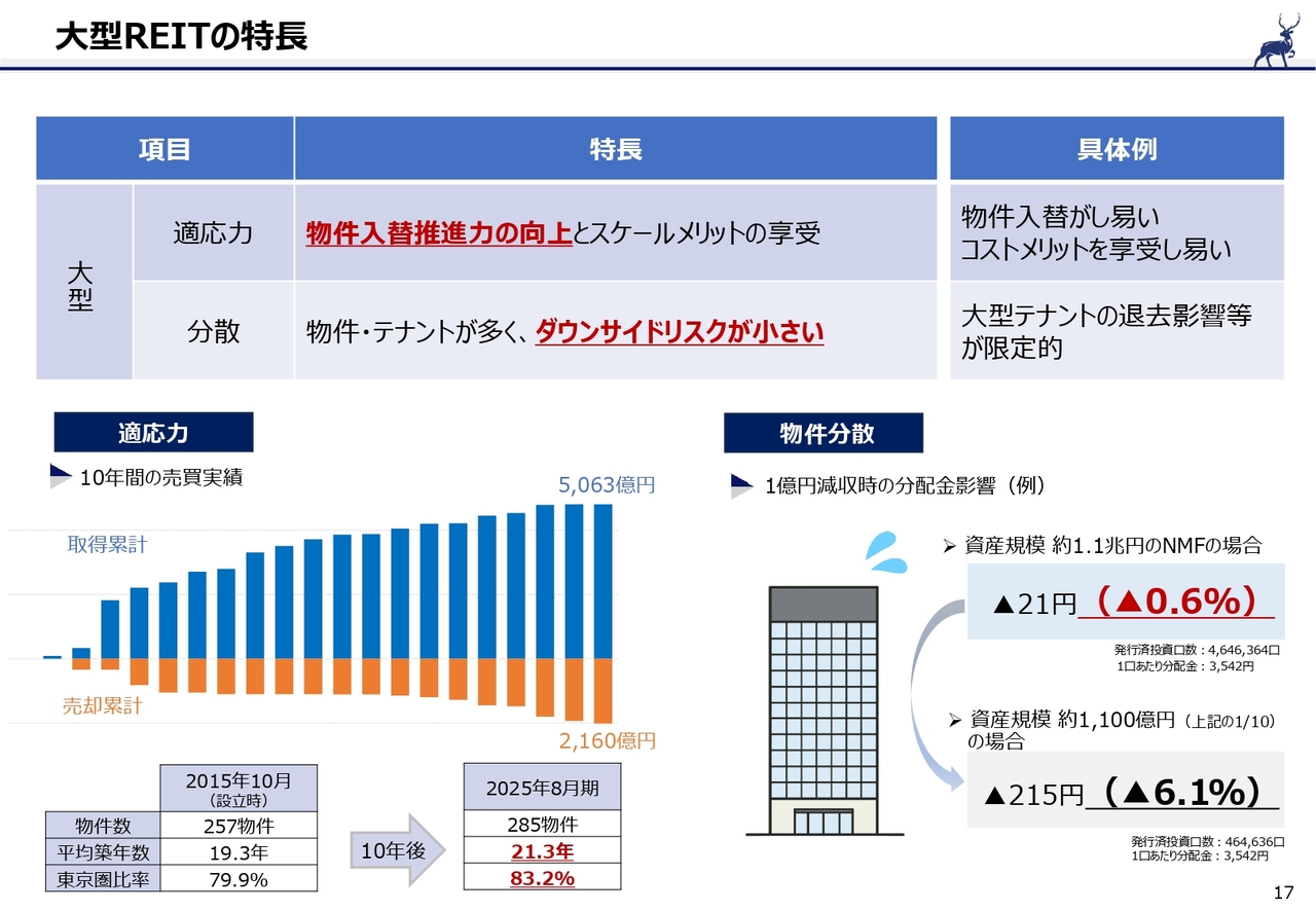 増子:1点目に記載しているとおり、規模が大きいと1物件あたりのシェアが小さくなり、物件の入替がしやすくなります。また、コスト面ではスケールメリットを享受できる点が挙げられます。