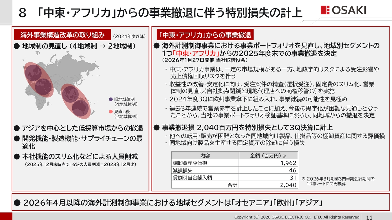 なお、「中東・アフリカ」事業からの撤退に伴う2026年度の海外事業の構成は、5月に予定している2026年度業績見通しにて公表する予定です。