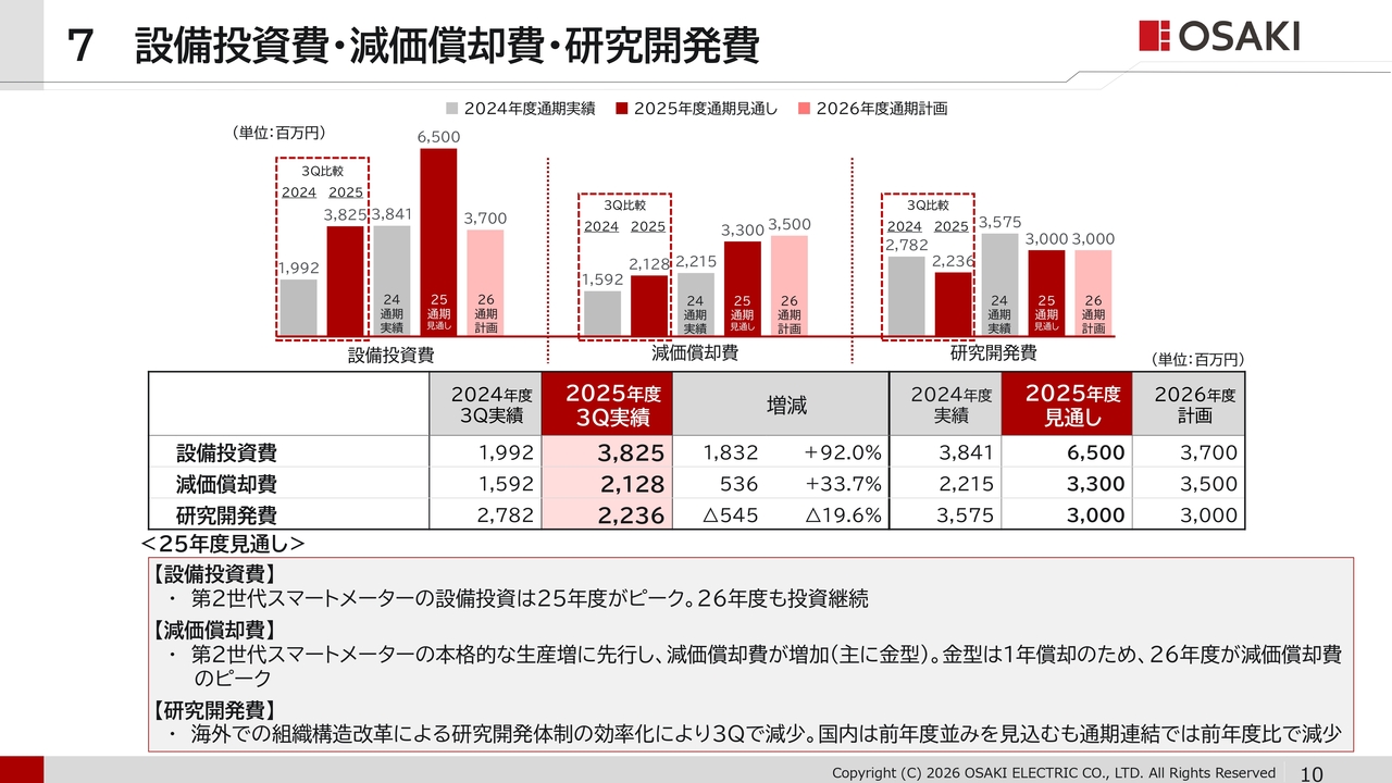 一方、減価償却費については第2世代スマートメーターの、本格的な生産増に先行するかたちで減価償却費が発生しています。