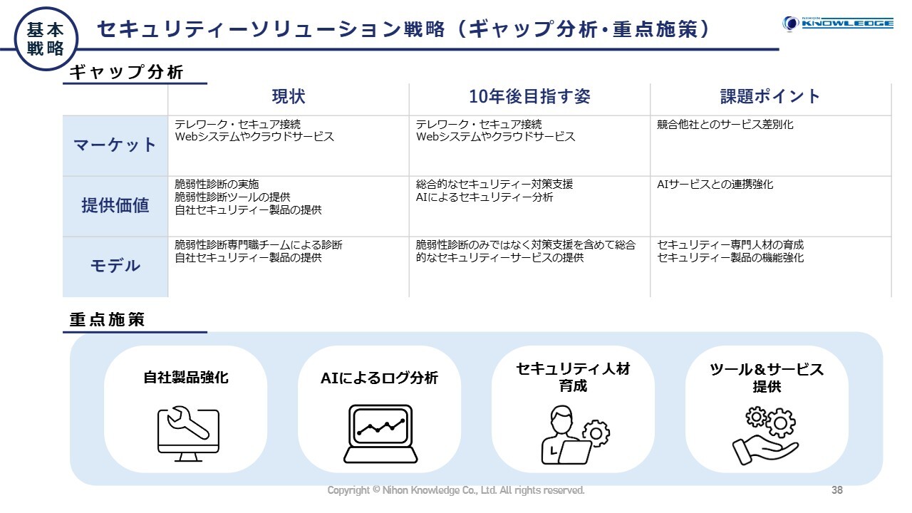 従来のセキュリティ製品の提供も拡大していきます。ギャップ分析はスライドに記載のとおりです。
