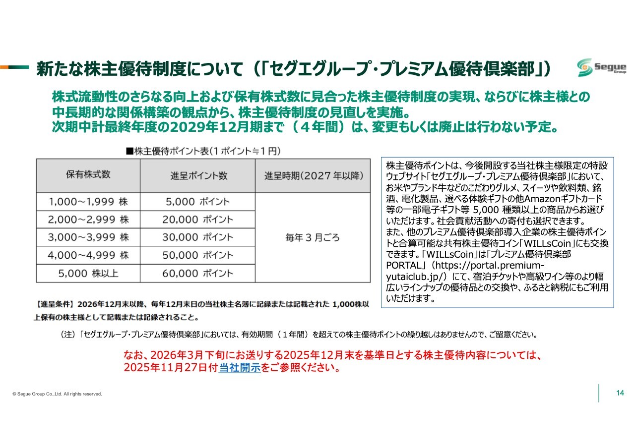 新たな株主優待制度について(「セグエグループ・プレミアム優待倶楽部」)