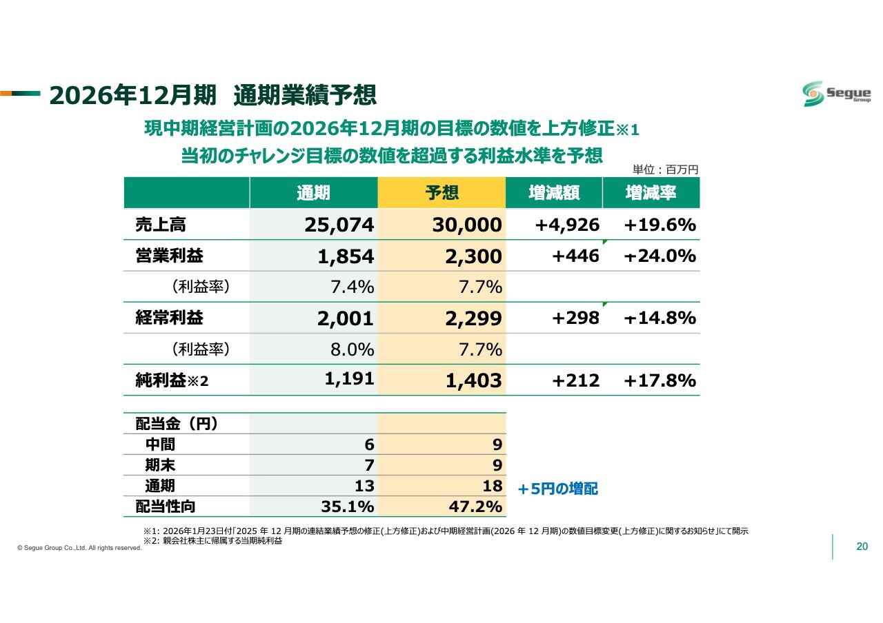 セグエグループ---2025年12月期の期末配当 02/25 10:31