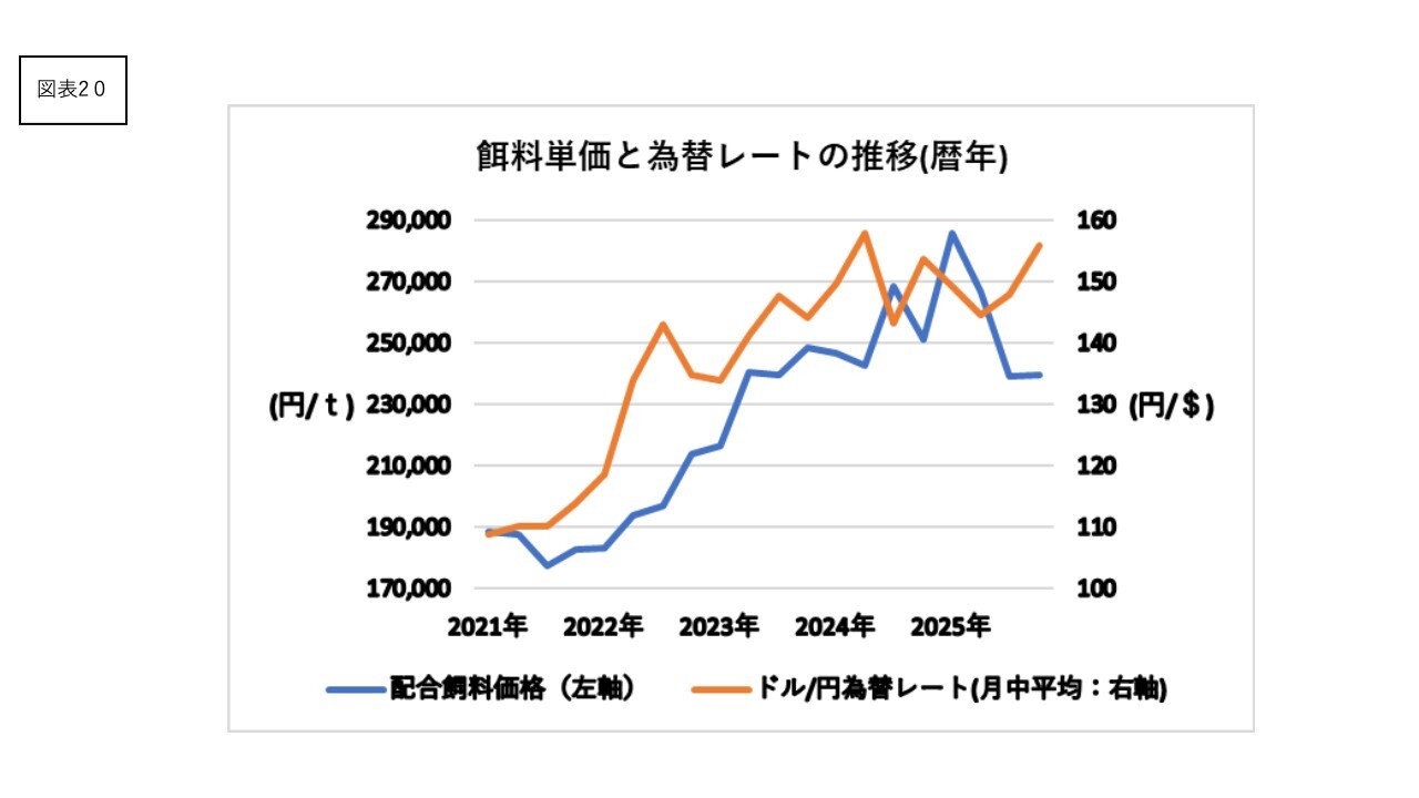 餌料単価と為替の動向はスライドのような状況です。為替は円安圏から抜け出しにくく、餌料単価も高止まりです。