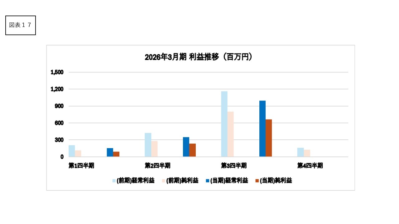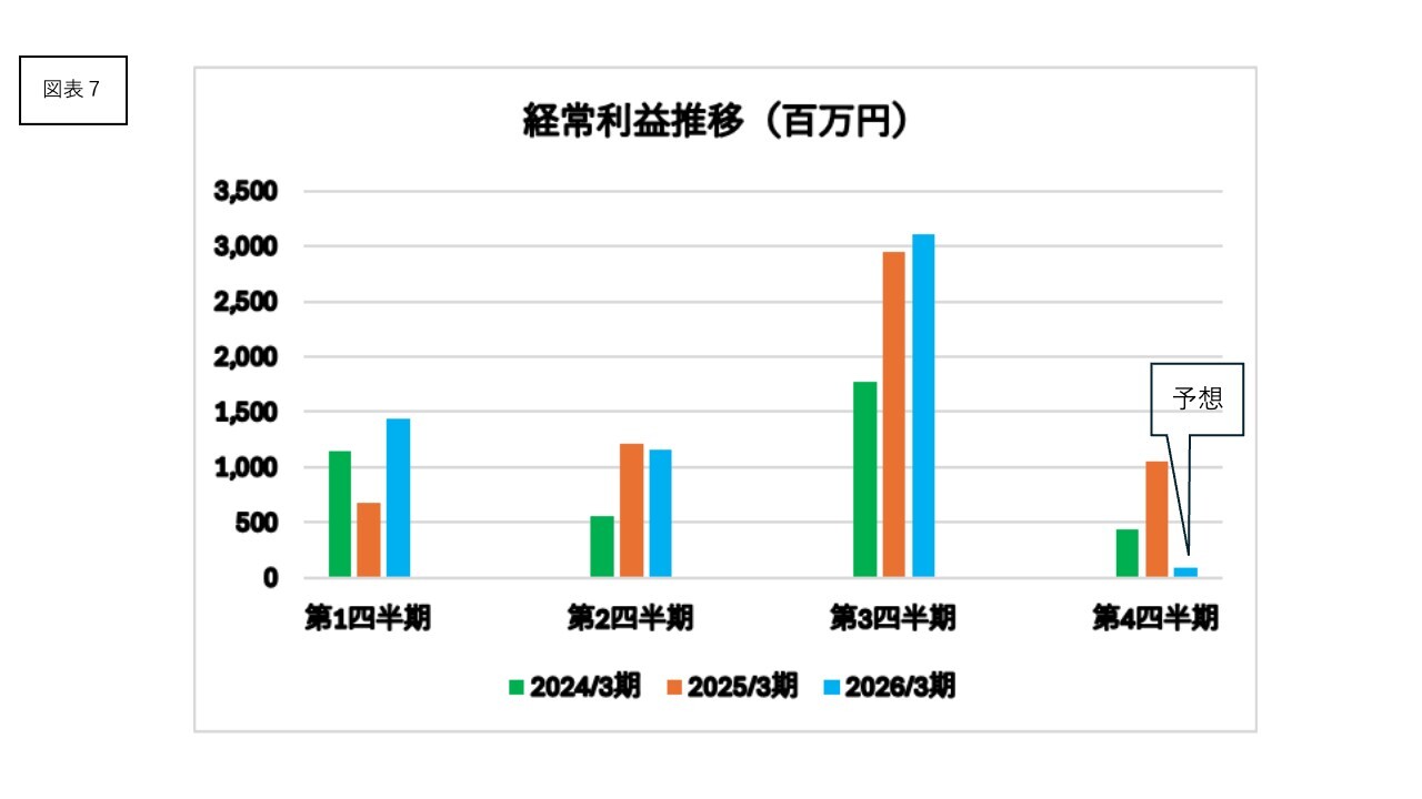 経常利益のそれぞれの四半期推移はスライドのとおりです。第3四半期の売上増の結果、それぞれの利益面でもピークとなります。ただし、第4四半期は売上高が低調になることから、営業利益1億円、経常利益1億円程度と見込んでいます。