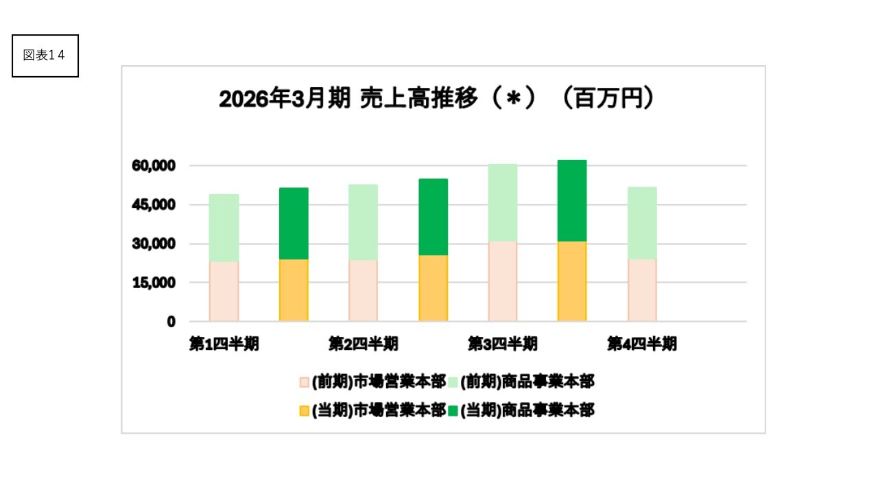 第3四半期において、商品部は円安の影響などで各商材相場の高騰が続く中、大手外食産業や量販店を直接のターゲットにした販売拡大に努めたことでおおむね前年同期並みの売上高となりました。