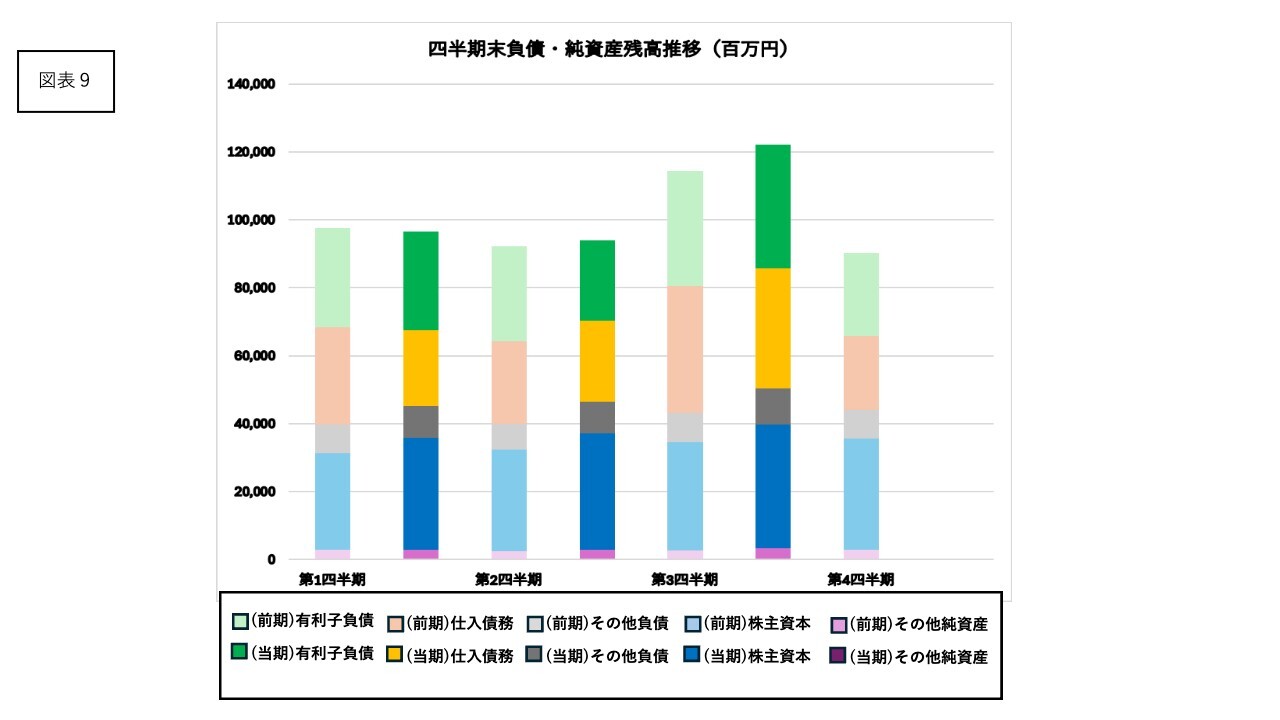 負債・資本の主要残高では、売上高の増加に合わせ、仕入債務は前期末から135億円増加しました。純資産も同期末から41億円増加しました。