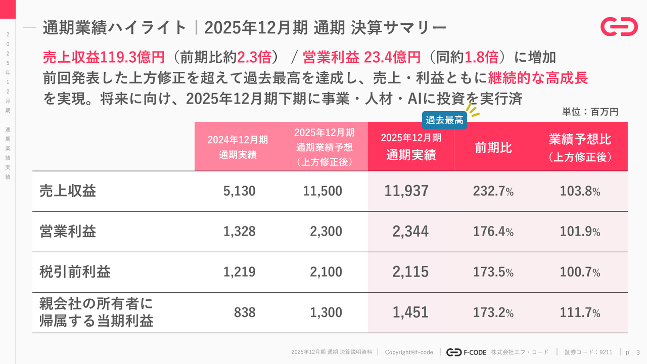 2025年12月期 通期 決算ハイライト